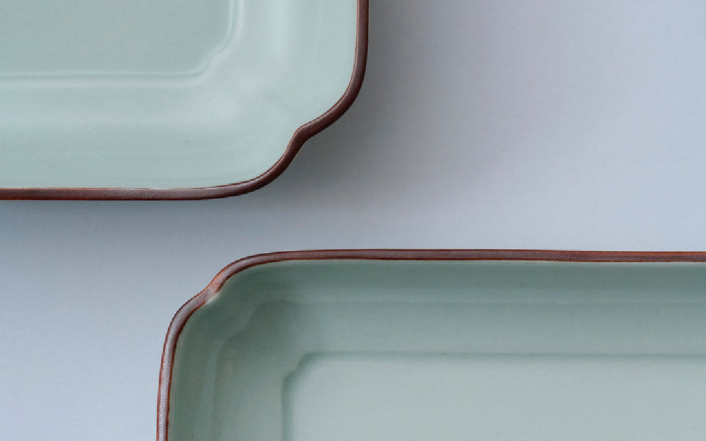 木瓜角皿 縁錆 使い勝手も収納も小粋な木瓜角皿に新色の登場です。縁をぐるりと鉄錆で囲いました。天草の白磁と土灰釉のやさしい薄青色がきゅっと引き締まります。無地のお皿とはまた違う佇まいをお楽しみください。 素材 天草陶石、土灰釉、鉄錆製造 白岳窯[長崎県波佐見町]原型 金子哲郎[佐賀県有田町]寸法 正角:幅160×奥行160×高さ38mm   長角:幅...