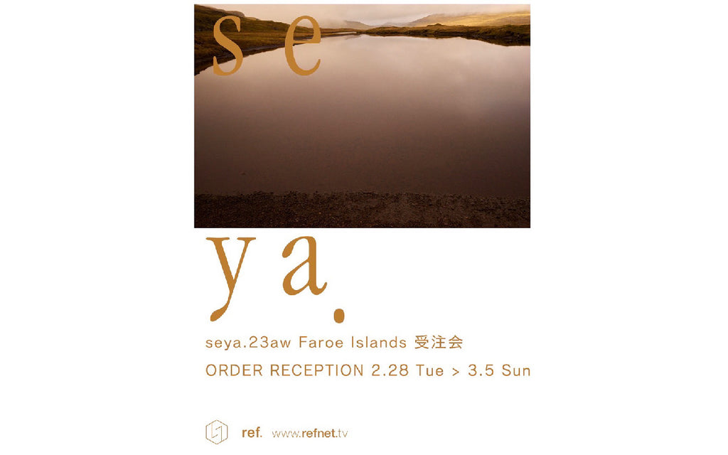 「Faroe Islands SEASON #13 seya.23AW受注会」2/28(火)から3/5(日)の6日間、ref.にてseya.の23AW受注会を開催致します。今回のテーマである23AW Faroe Islands は、ノルウェーとアイスランドの中間に浮かぶ群島で、ノルウェー海と北大西洋に挟まれた海にあります。自然と呼ぶよりも地球の生まれた...
