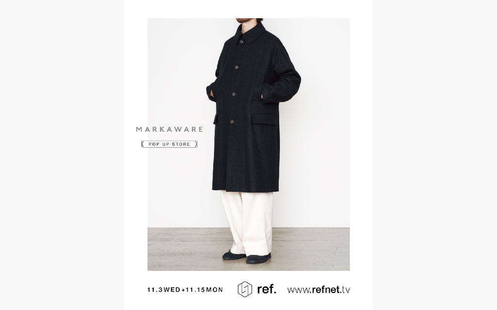 MARKAWARE POP UP STORE at ref.11/3(水)よりMARKAWAREのPOP UP STOREを開催致します。今回はデッドストックのカシミヤ生地を使ったアイテムにフォーカス。日本国内で紡績され、デザイナーの石川氏が「縮絨がかかり難いカシミヤをここまでしっかりメルトン化できるということに驚いた」という”メルトン"と、メルトン...