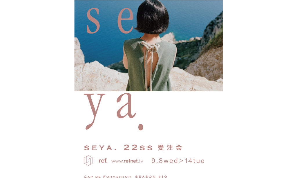 9/8(水)から9/14(火)の7日間、ref.にてseya.の22SS受注会を開催致します。今回はマヨルカ島のCap de Formentor。風が集まる場所、と島の人が呼ぶ岬です。岬の突端、風と空と海しかない、ゼロに飛んでいくような解放感がテーマです。22SSシーズンアイテムをいち早く体験していただけます。この機会に是非ご来店ください。9/...