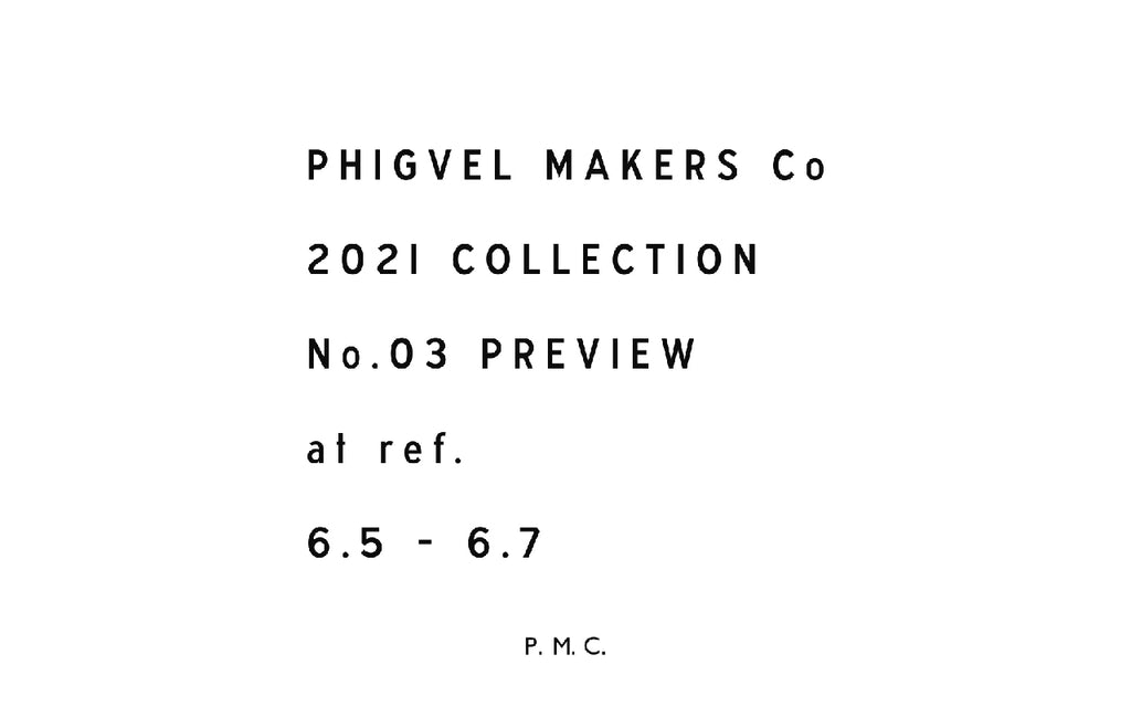 PHIGVEL 2021 COLLECTION No.03 PREVIEW @ ref. 6/5(土)から6/7(月)の3日間、ref.にて”PHIGVEL” 2021 COLLECTION No.03 PREVIEW を開催します。 期間中は秋冬商品をフルラインナップで揃え、実際にご試着頂きご予約が可能となっております。 6/5(土),6/...