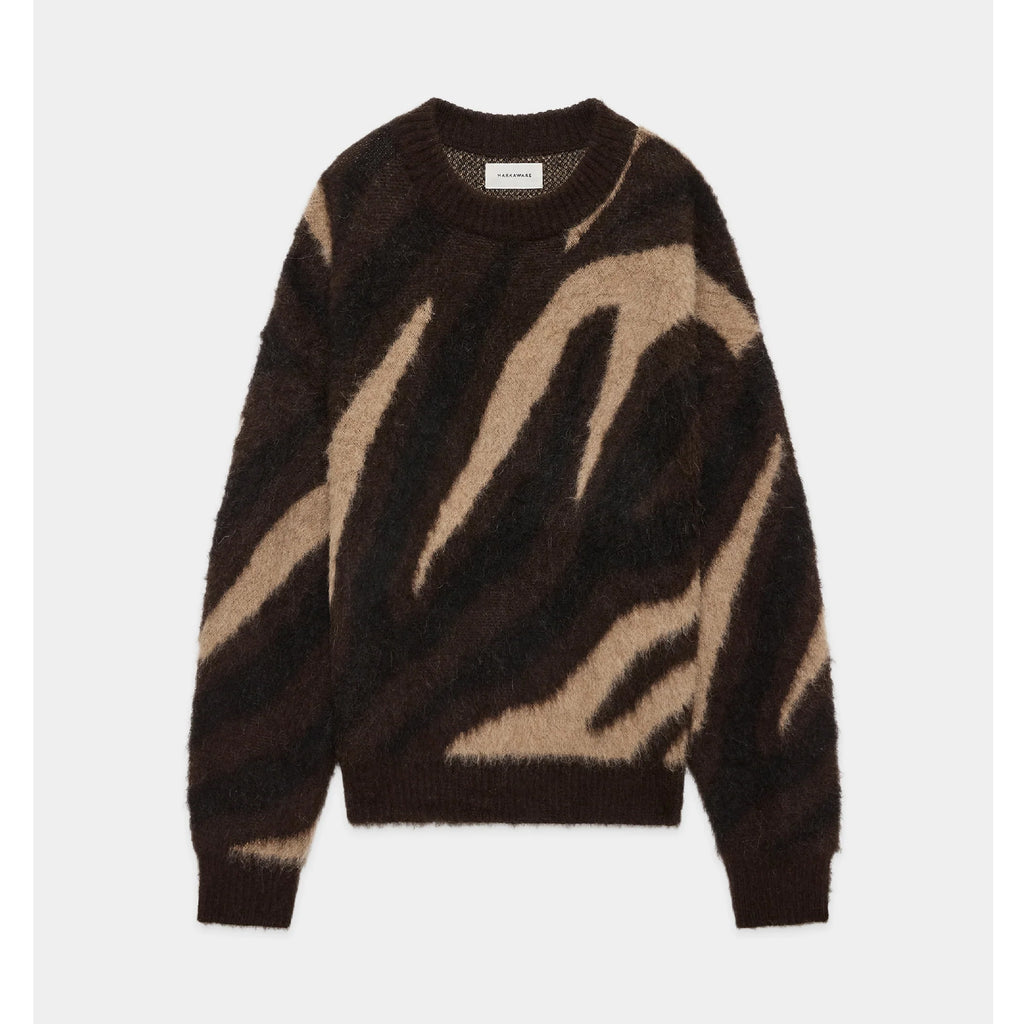 NATURAL COLOR ALPACA BIAS ZEBRA PATTERN JUMPER