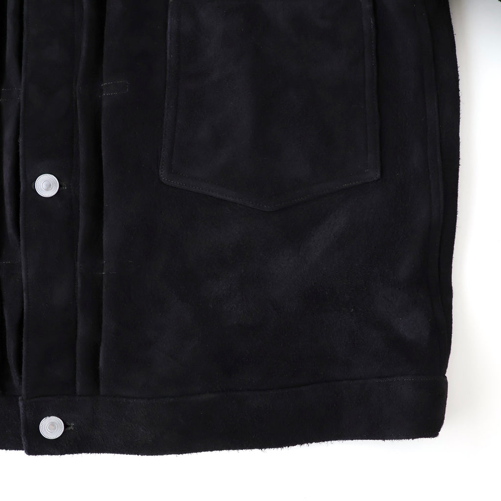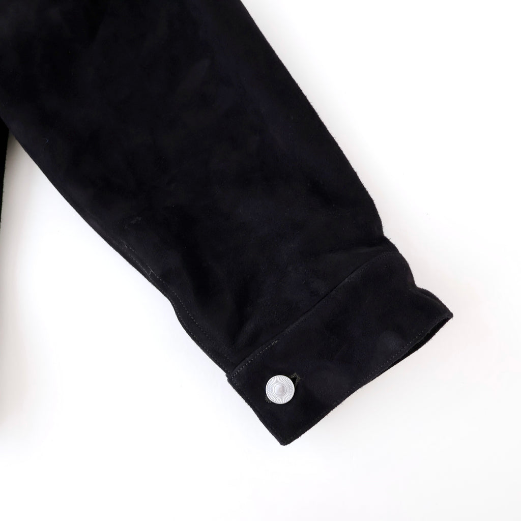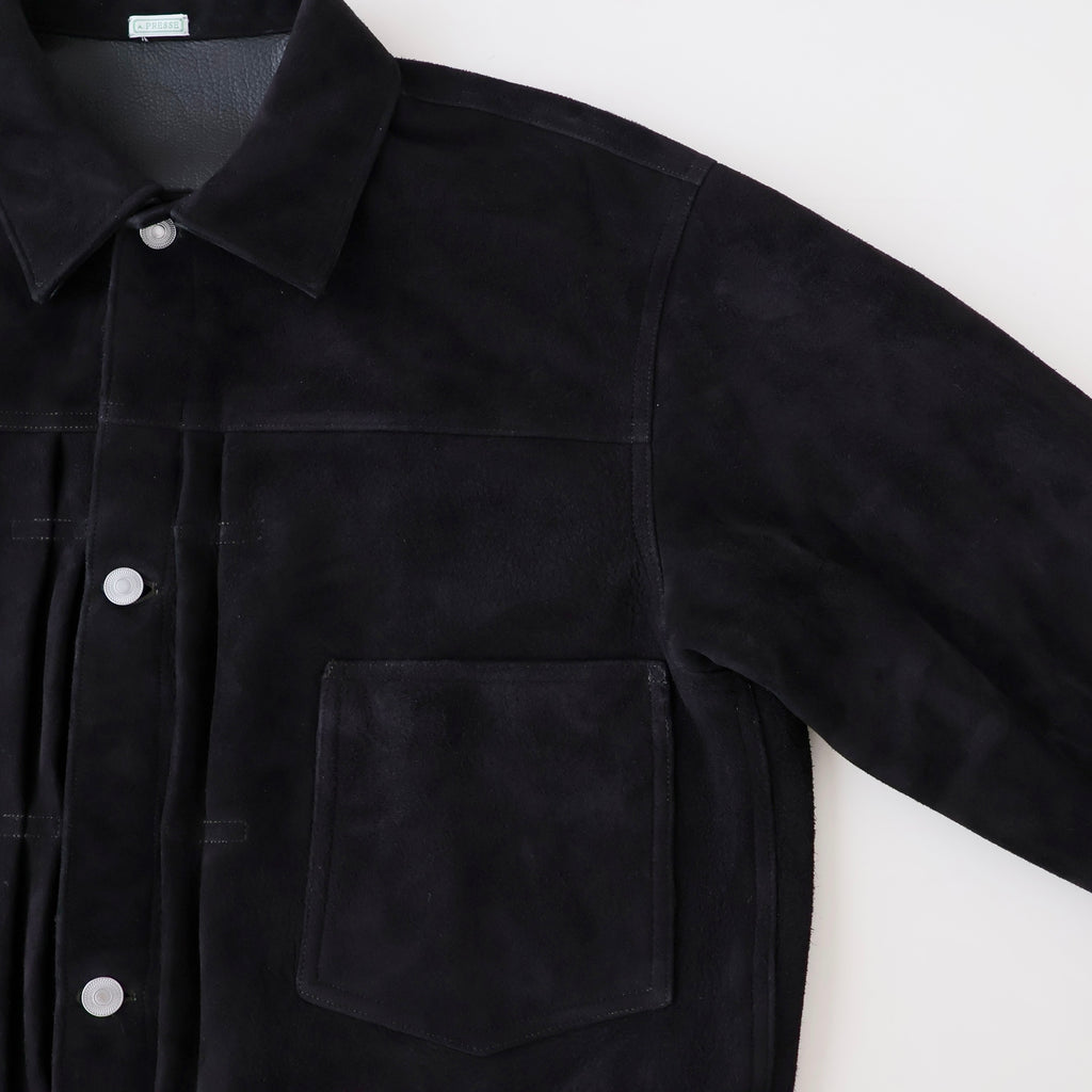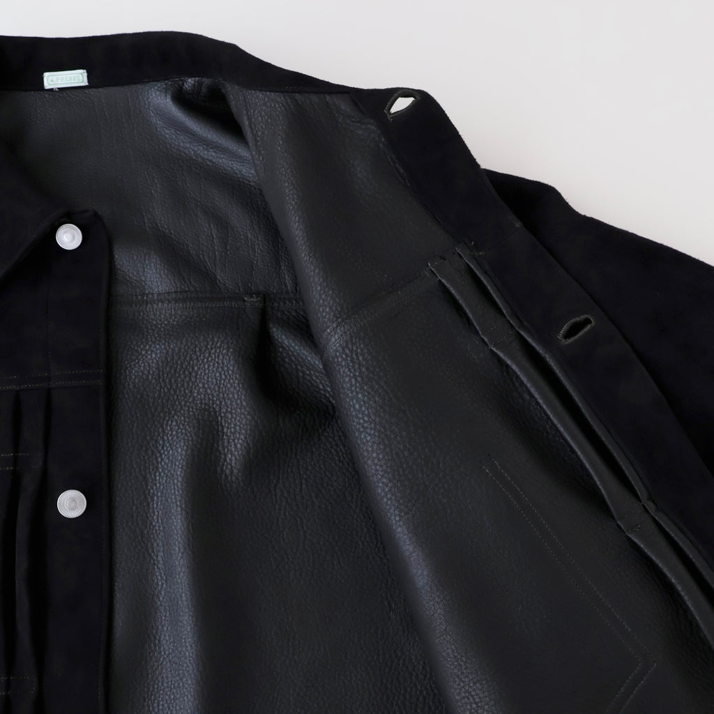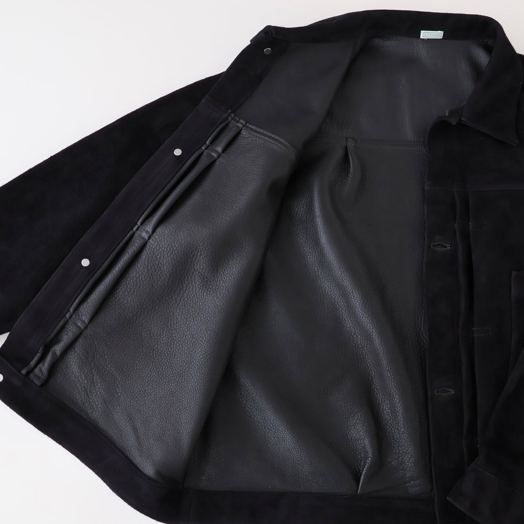 国産のディアスキンスエードを使用、なめし工程と染色工程も一貫して日本で丁寧に仕上げたスエード。肉厚で軽く柔らかいタッチがディアスキンの特徴で、他の革と比べて水や湿気に強いこともディアスキンのメリット。吟面を綺麗に残しライニング無しの一重仕立てにすることで、軽く着心地も良い。