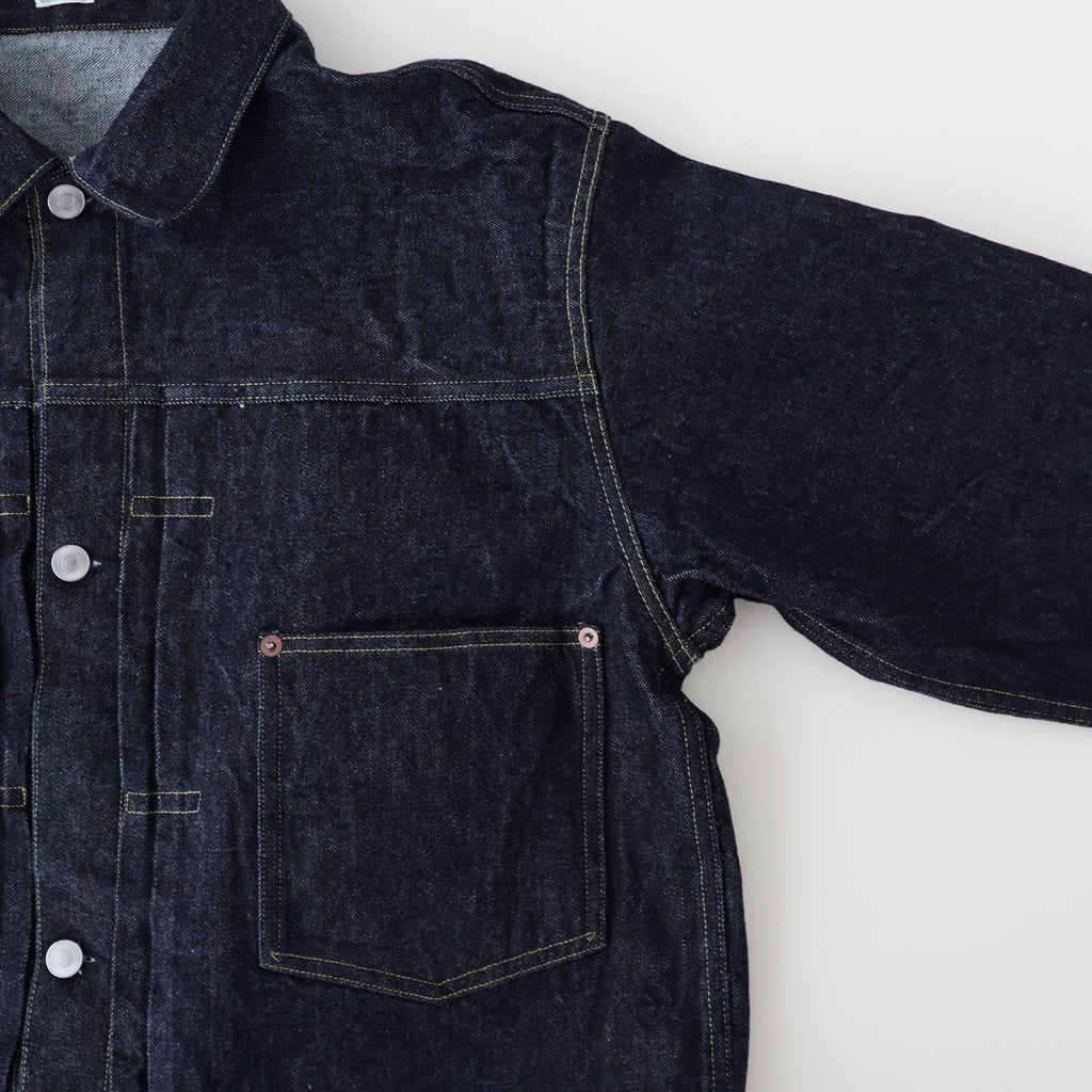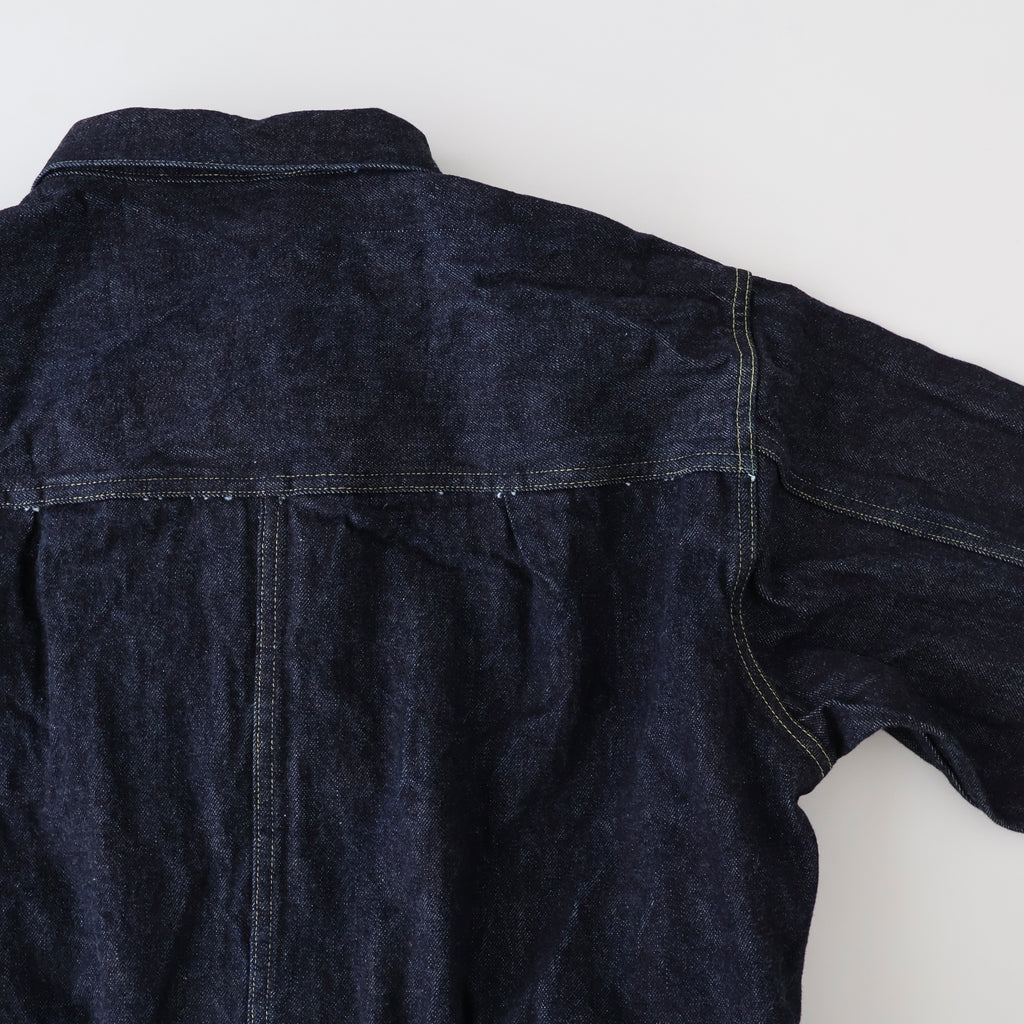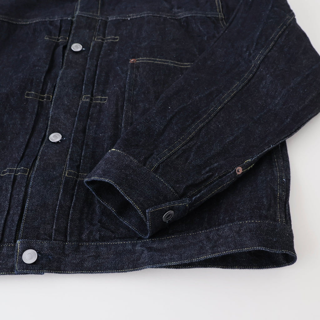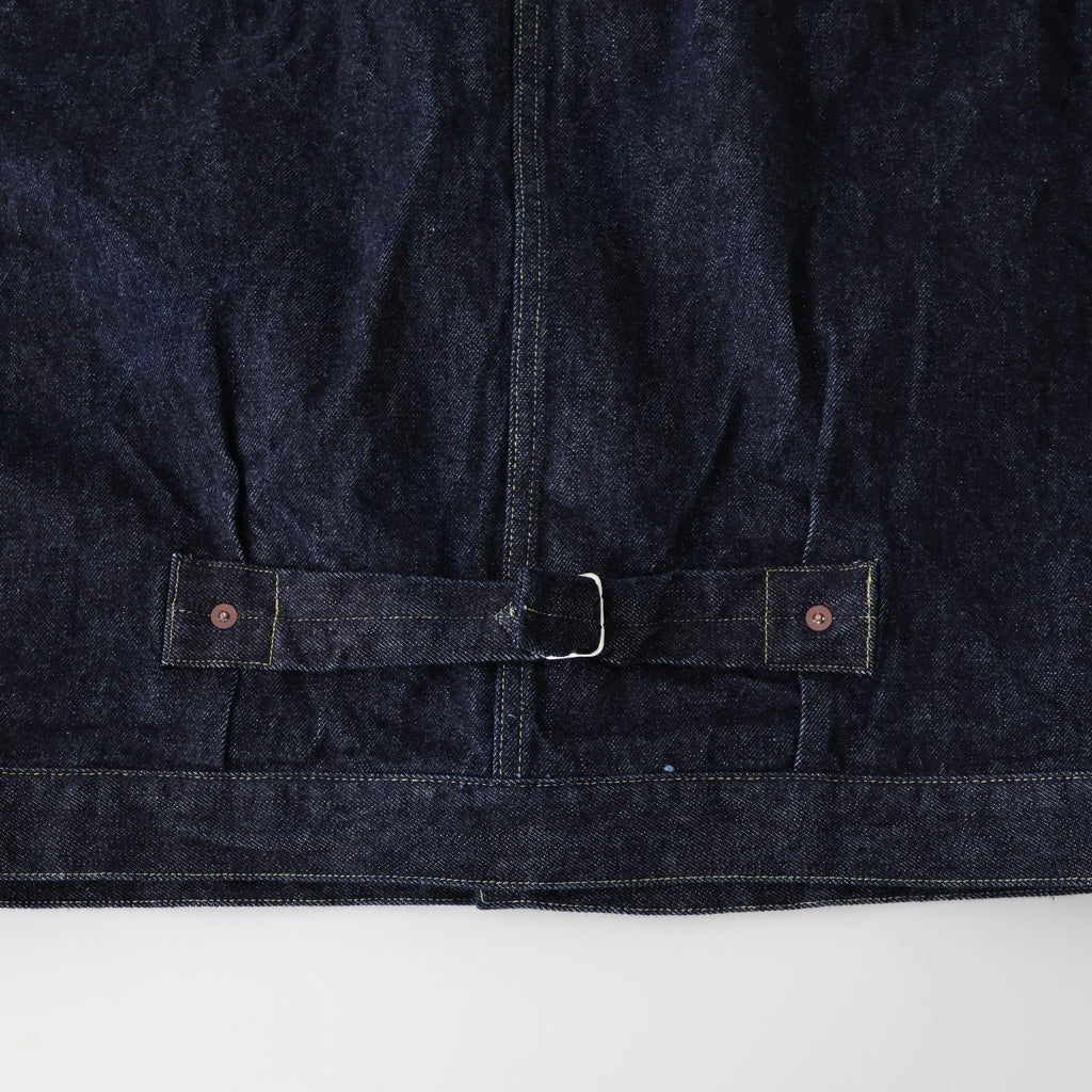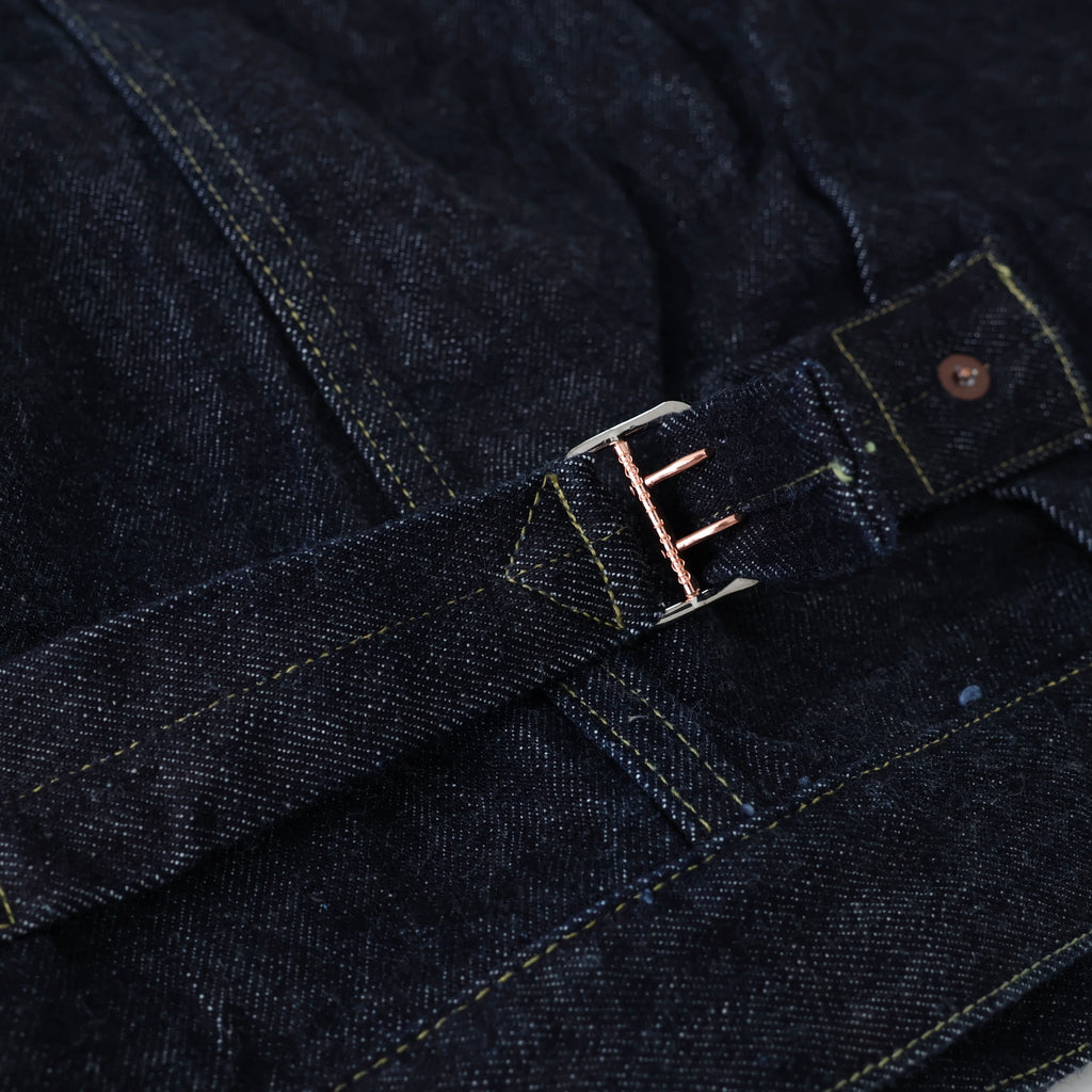 生地は13.5ozの大戦モデルを解析したキバタデニム。古着から糸を解き、弱強撚ネップ糸、綿葉カス入りで紡績している。ムラ形状は、綿の配合と機械の設定による自然な機械ムラを再現し、緯糸は分析の結果、経糸との回転数や形状を変えている。綿自体の色目は現在は品種改良によって白度が高いものが生産されているが、当時の茶綿に近いクリーミーな色を再現するよう米綿を配合している。硫化などの混ぜ物はないレギュラーよりも濃いインディゴ色を再現して いる。