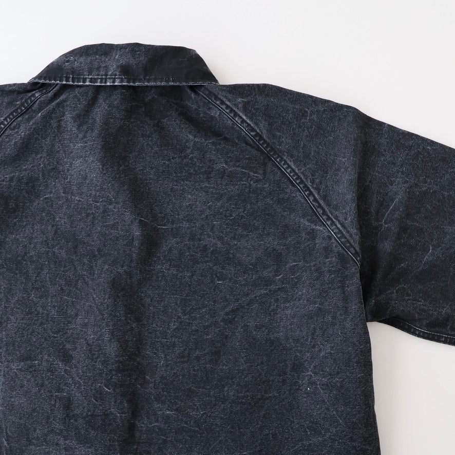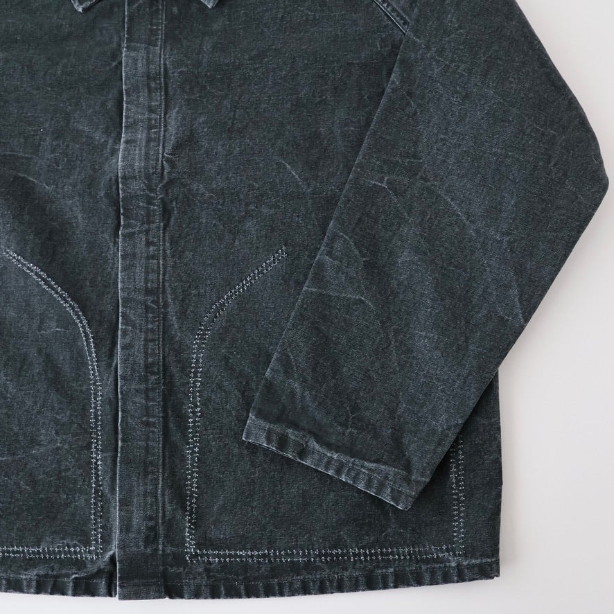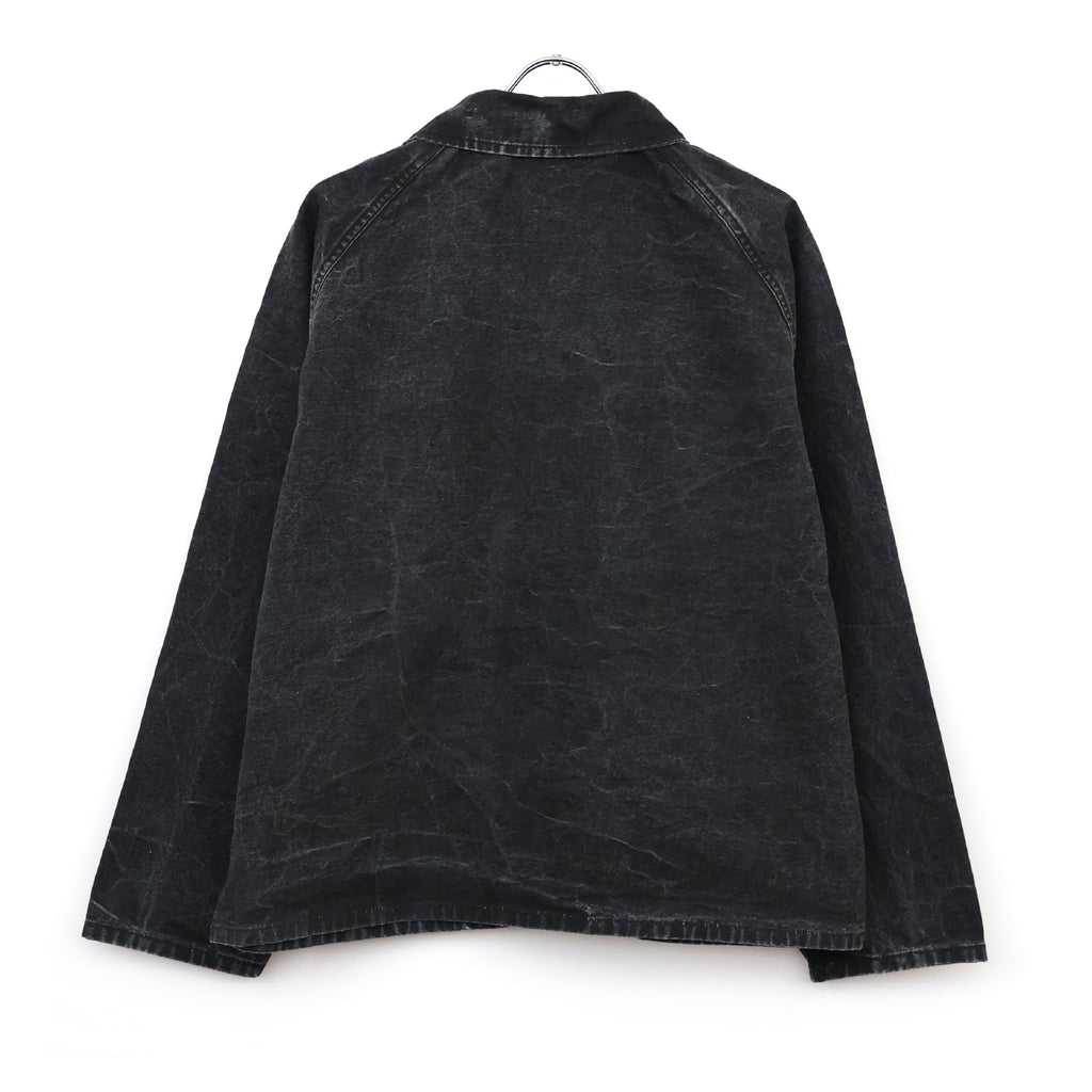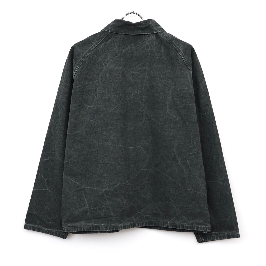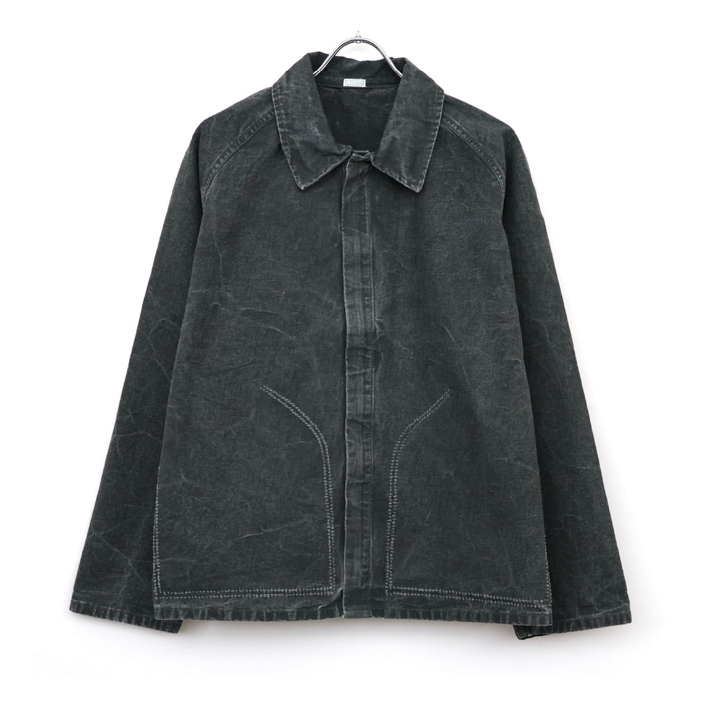ヴィンテージのミッシェルカモリバーシブルハンティングジャケットを、広いボディバランスで着丈を短くすることによって野暮ったさを解消した。襟付けの仕様をアレンジして、首回りの収まりを改善した。ヴィンテージは表も裏もカモフラージュ柄だが、両面同色の無地で着やすくアレンジした。腰ポケットがとれて針穴が残ったデザインが特徴。ファスナーを綿テープのリバーシブルファスナーし、ヴィンテージ感を強調した。
