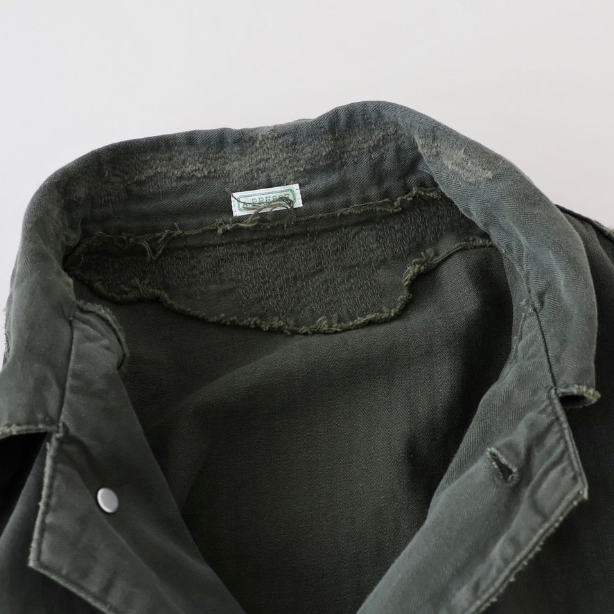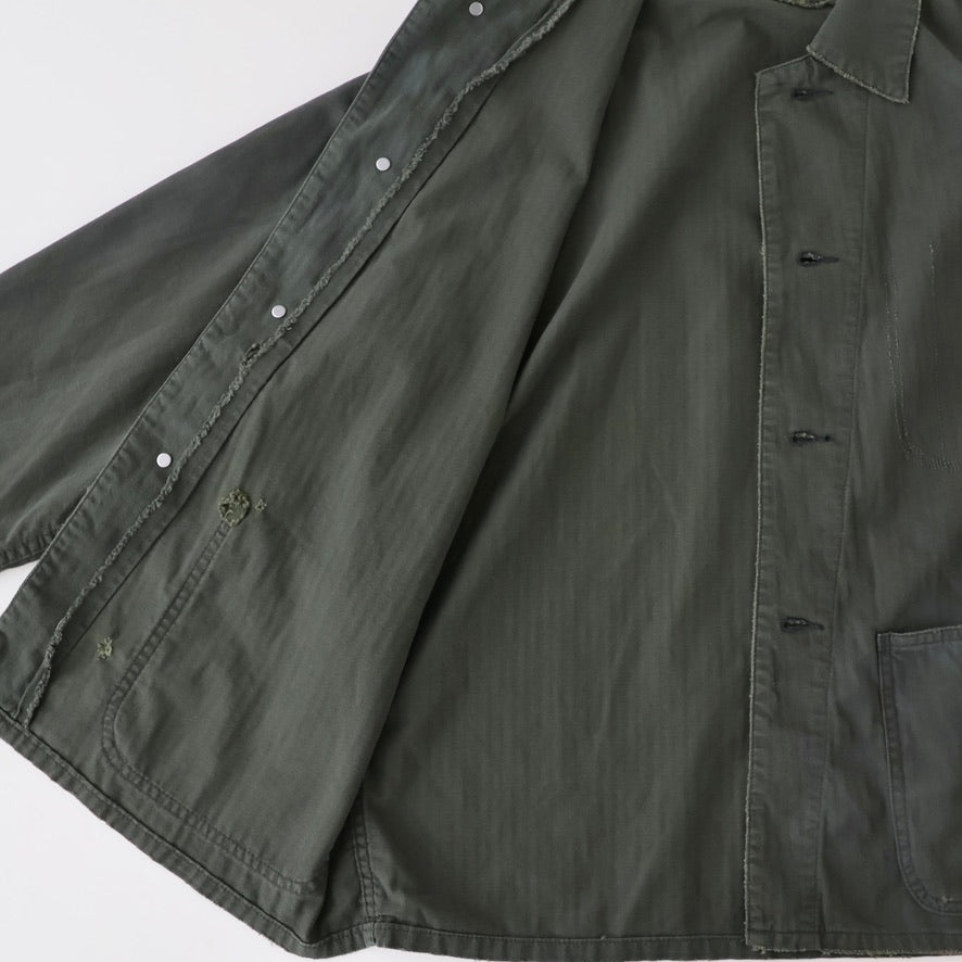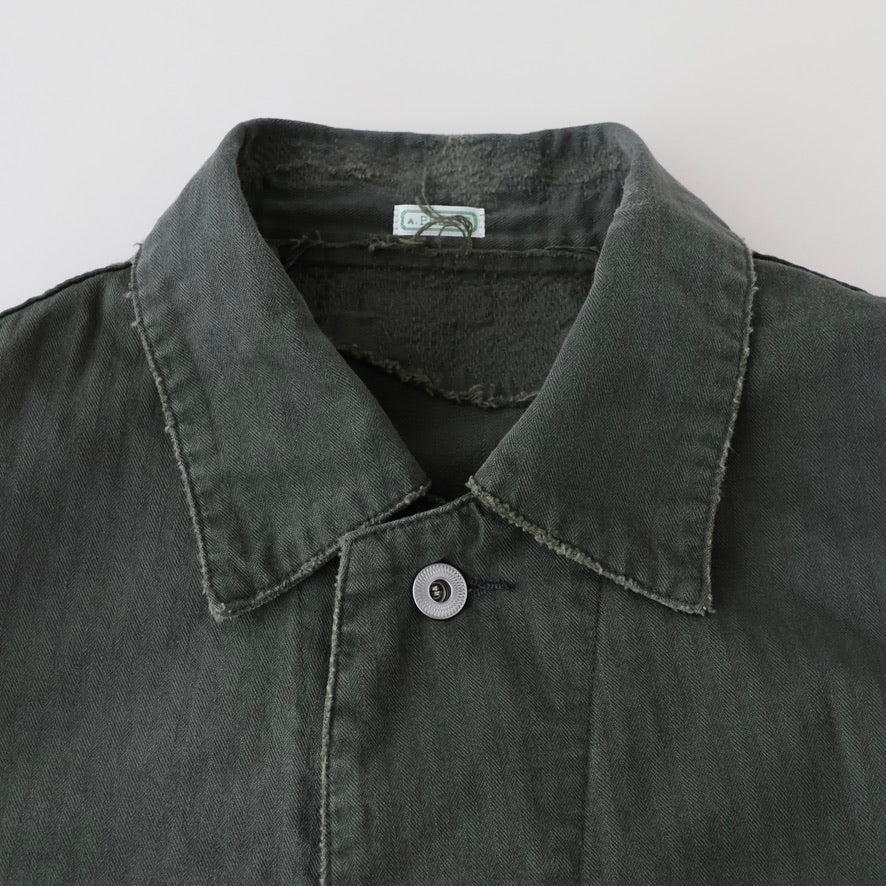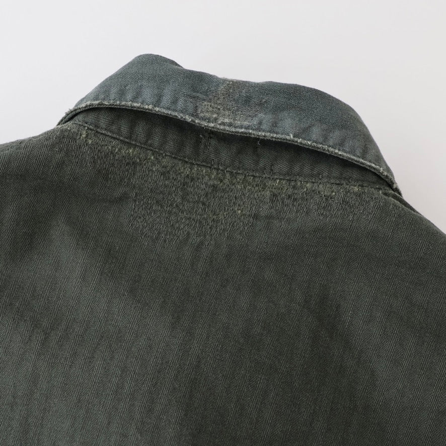 ヴィンテージを再現し、手作業でしか表現できない工程を重ね、自然な経年変化を表現した。経年変化で取れた胸ポケットの痕も再現した。