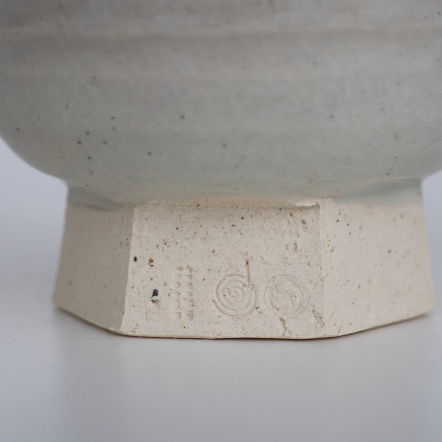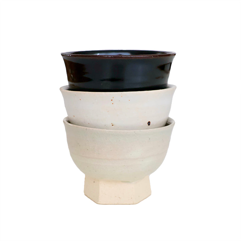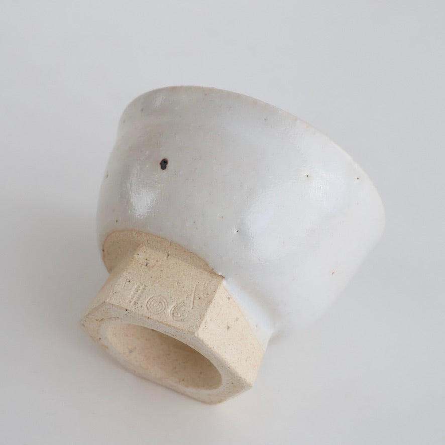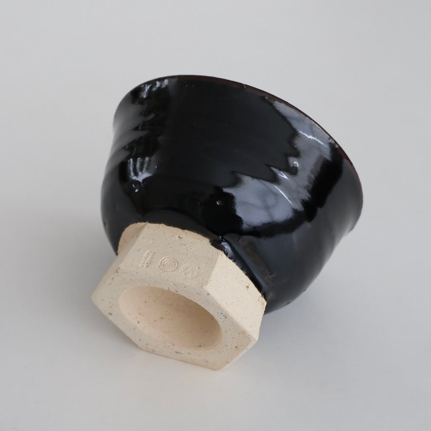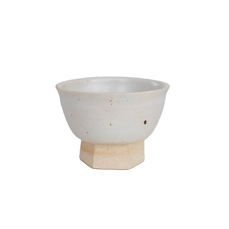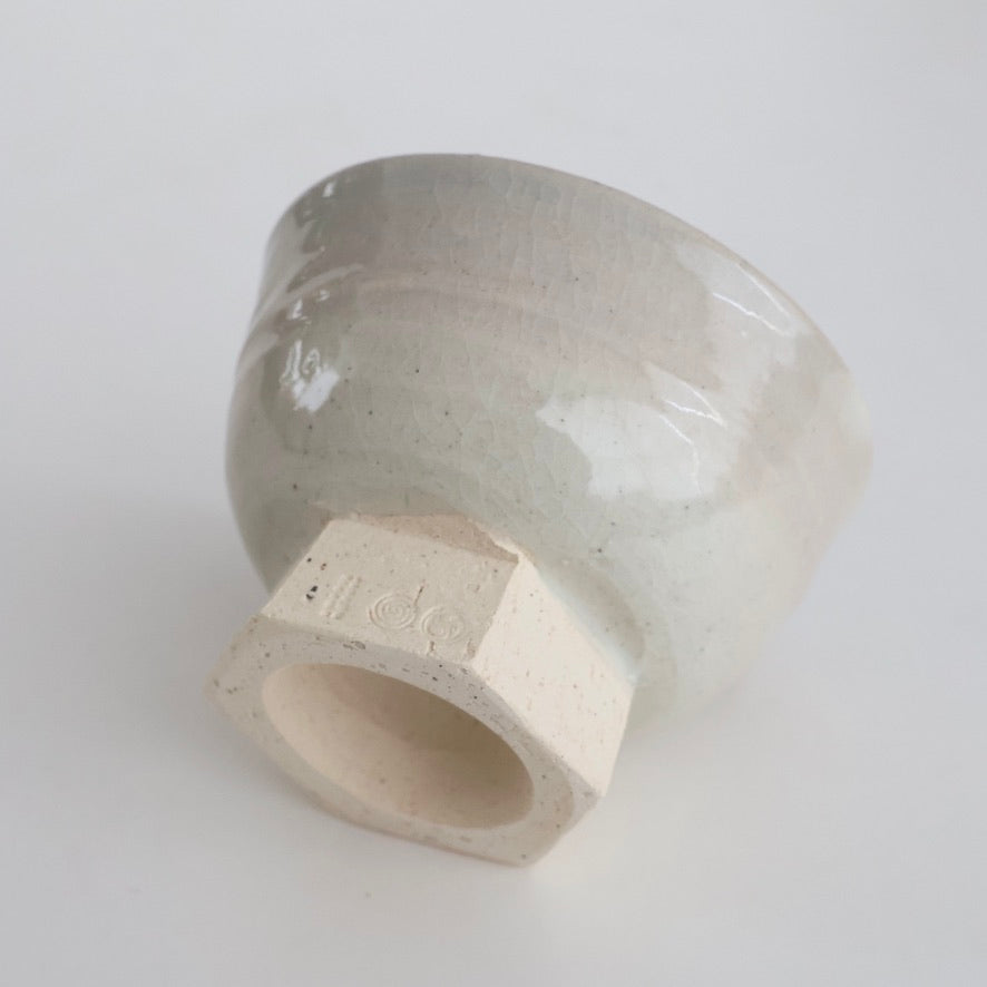 角の立った六角形の高台が印象的な碗です。小鉢として副菜をちょこっと盛れば様になりますし、少し大ぶりなぐい飲みとして使うのもおすすめです。