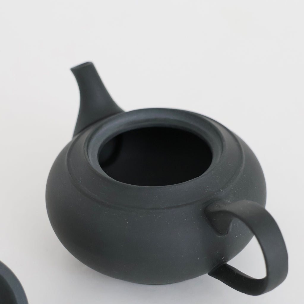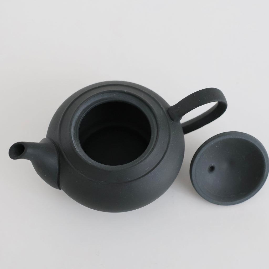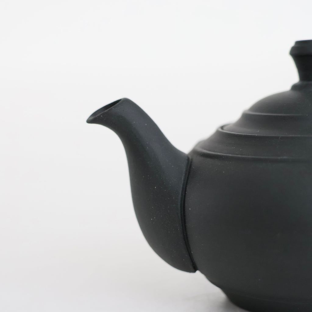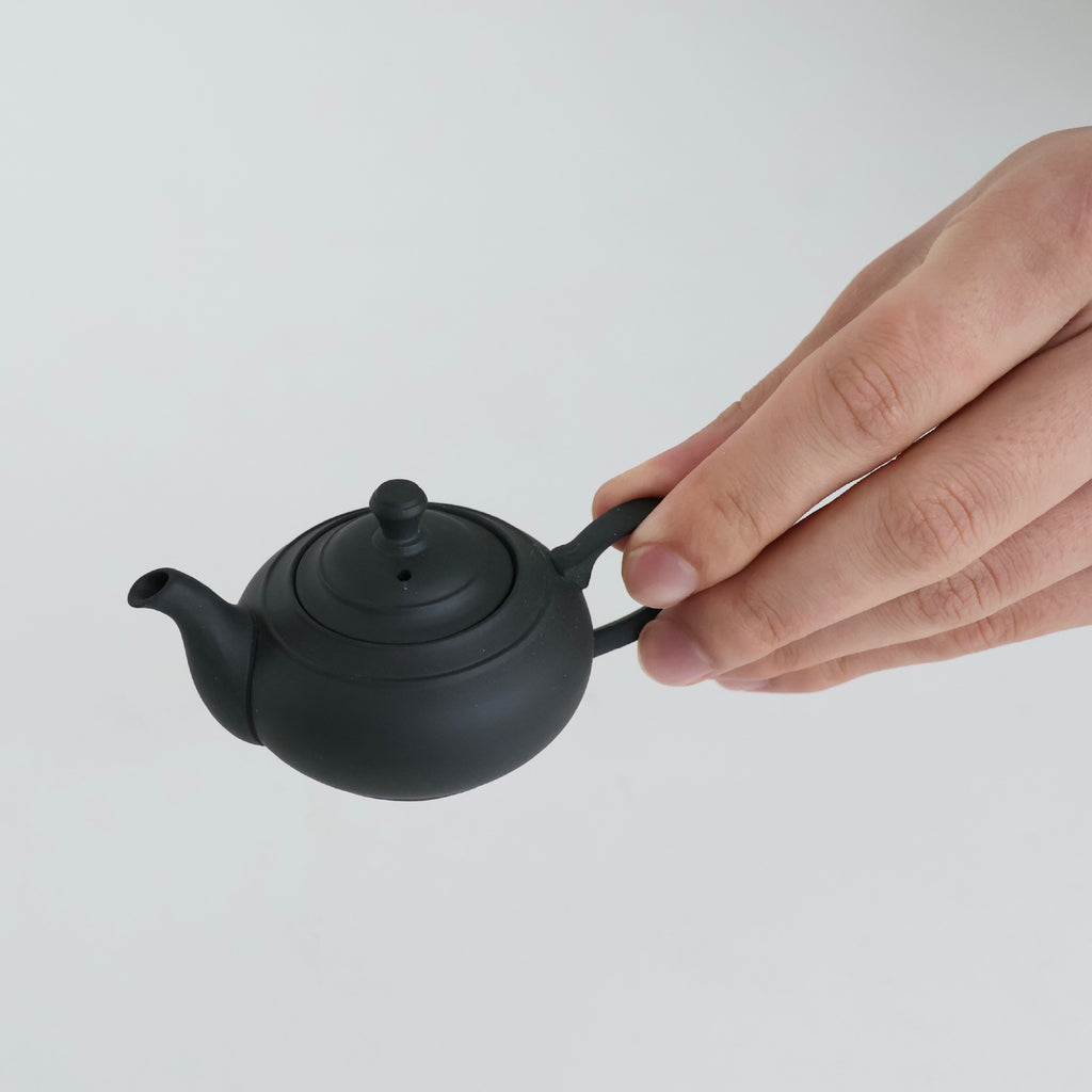 形のよい注ぎ口のキレも蓋の締まりも抜群。焼き締めなのでシミもできにくく、腰が低くて滅多に転びません。