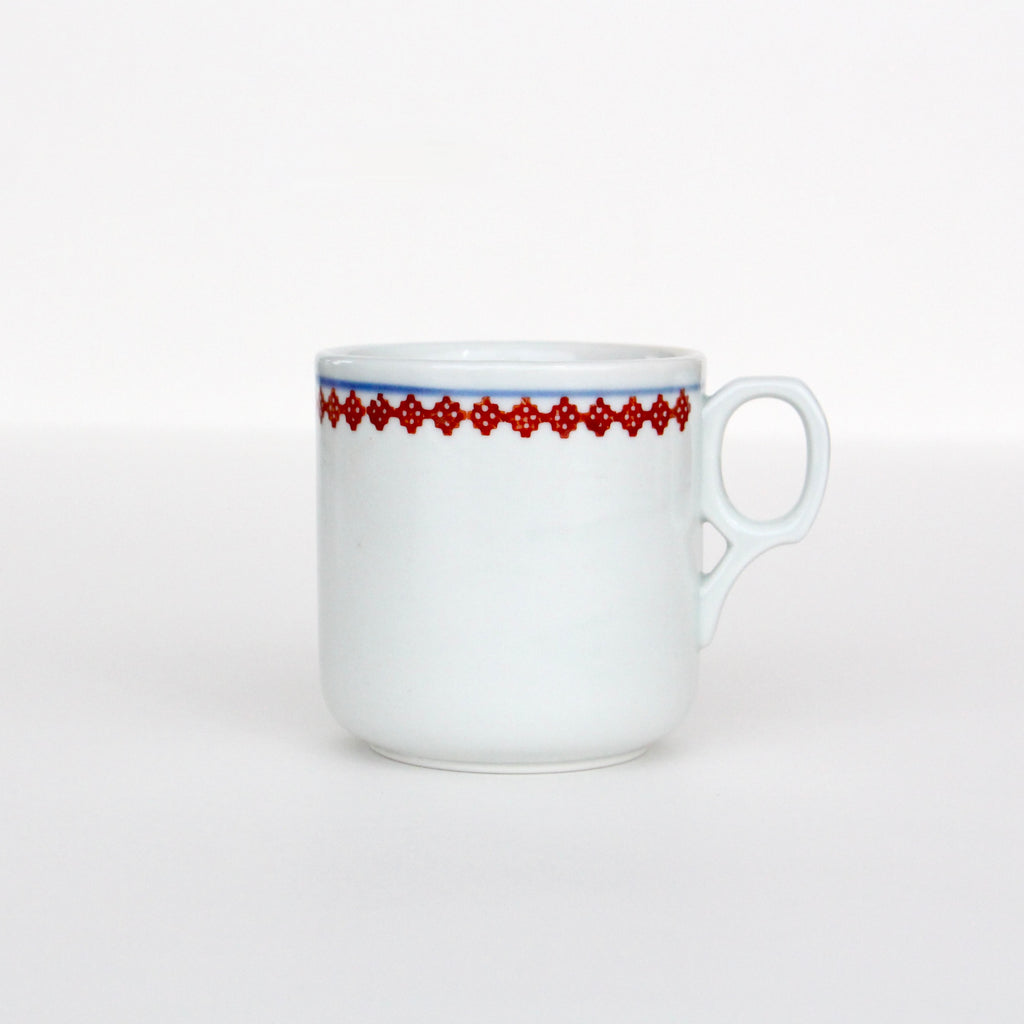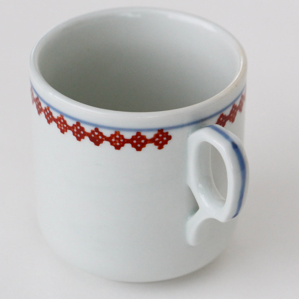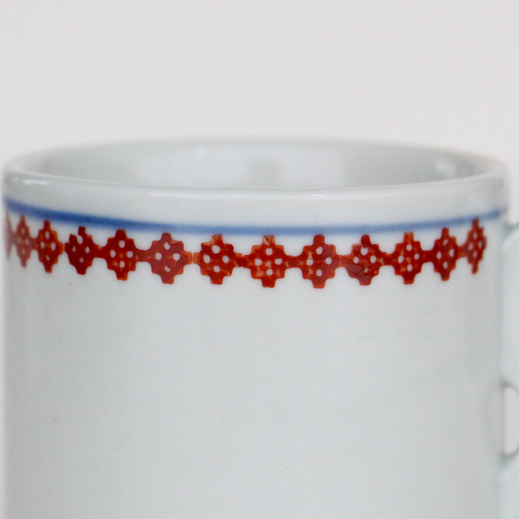 丸みを帯びたカップに、赤と青で絵付けされた紋様はどこか懐かしさを感じます。