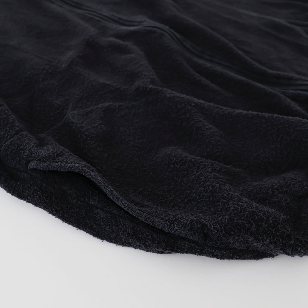 ・素材の特性上、水や汗などで湿った状態、または摩擦により他のものに色移りすることがありますので、白物、淡色衣類と合わせての着用の際はご注意ください。
