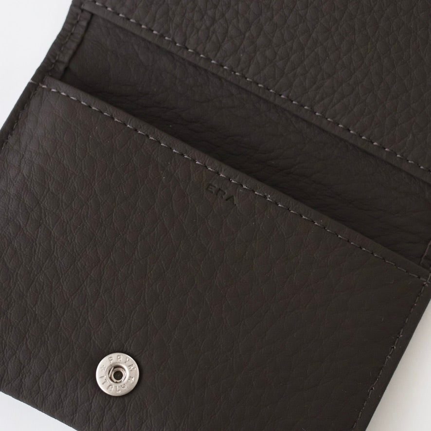 柔らかいタッチ感、優しくて綺麗な色合い、その人にスッと馴染むような落ち着いた表情。国内産のステアハイドを使用し、国内タンナーで仕上げた、シュリンク加工による自然なシボを活かした豊かな表情、ずっとさわっていたくなる柔らかな風合い。イーラのコンセプトを体現するためにつくりあげたレザーです。