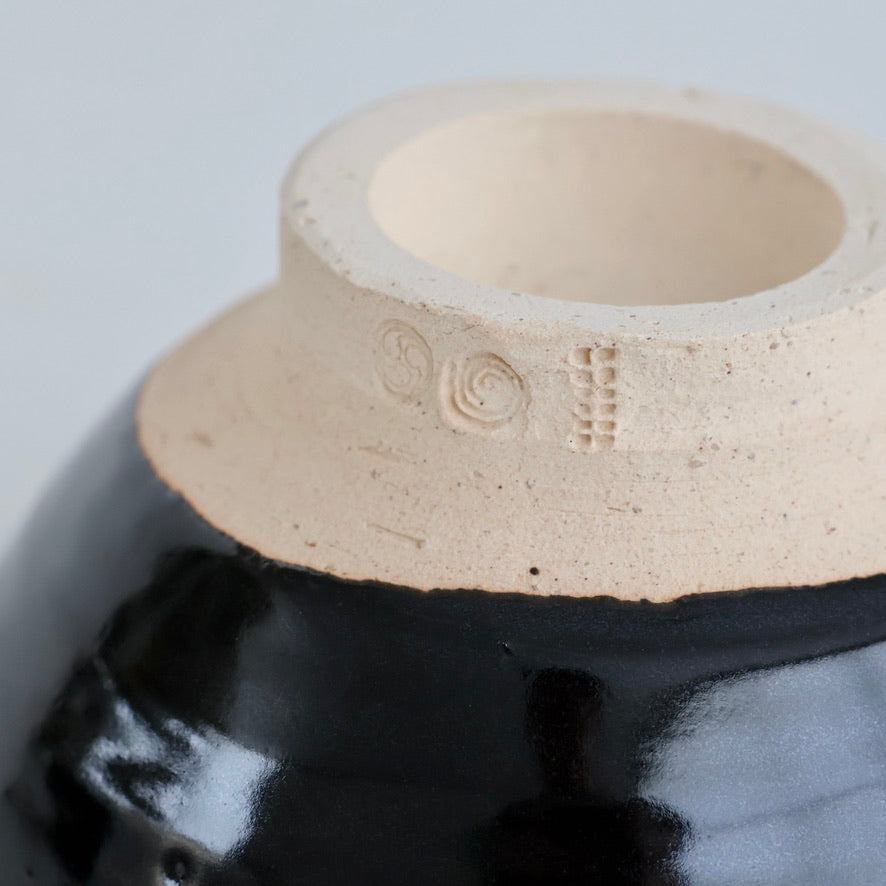 「黒飴」…伊賀に古くから伝わる透明な漆黒を映し出す鉄釉。とろりと艶やかな質感です。
