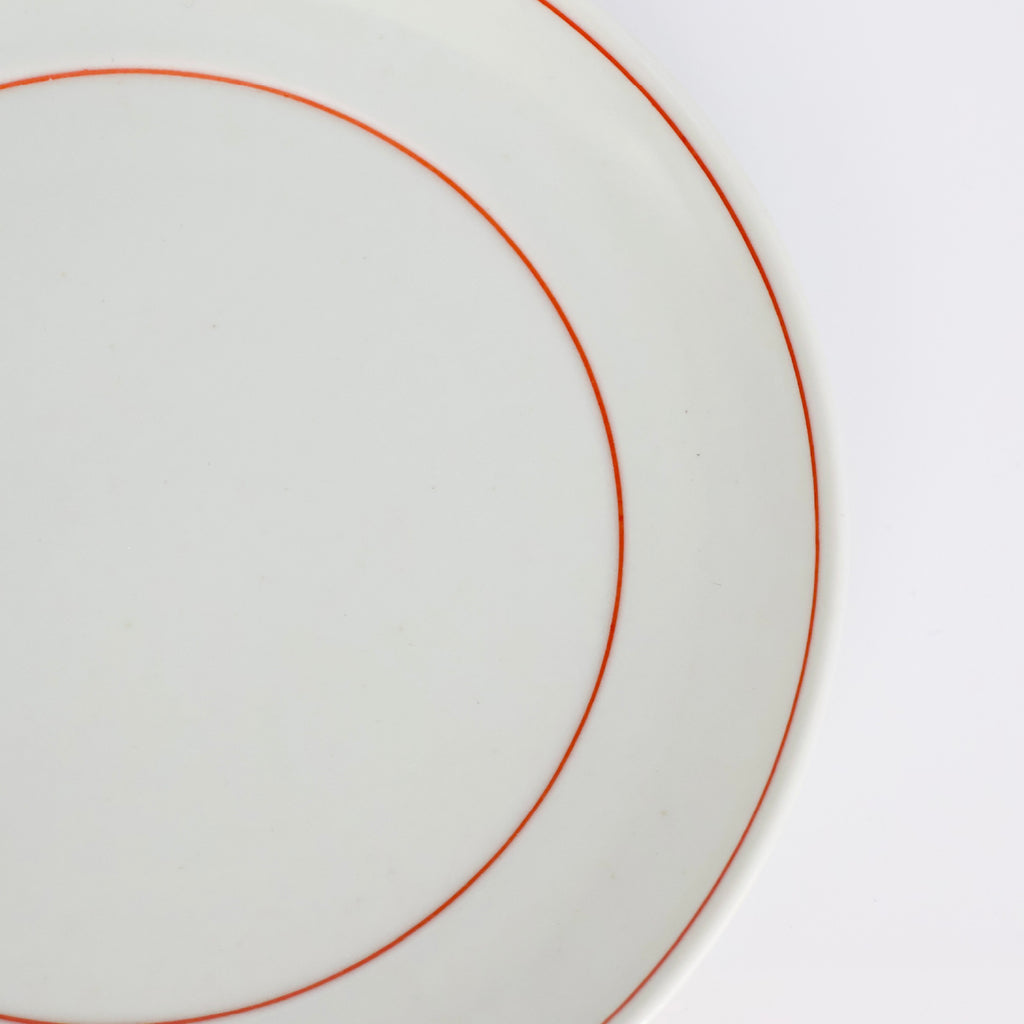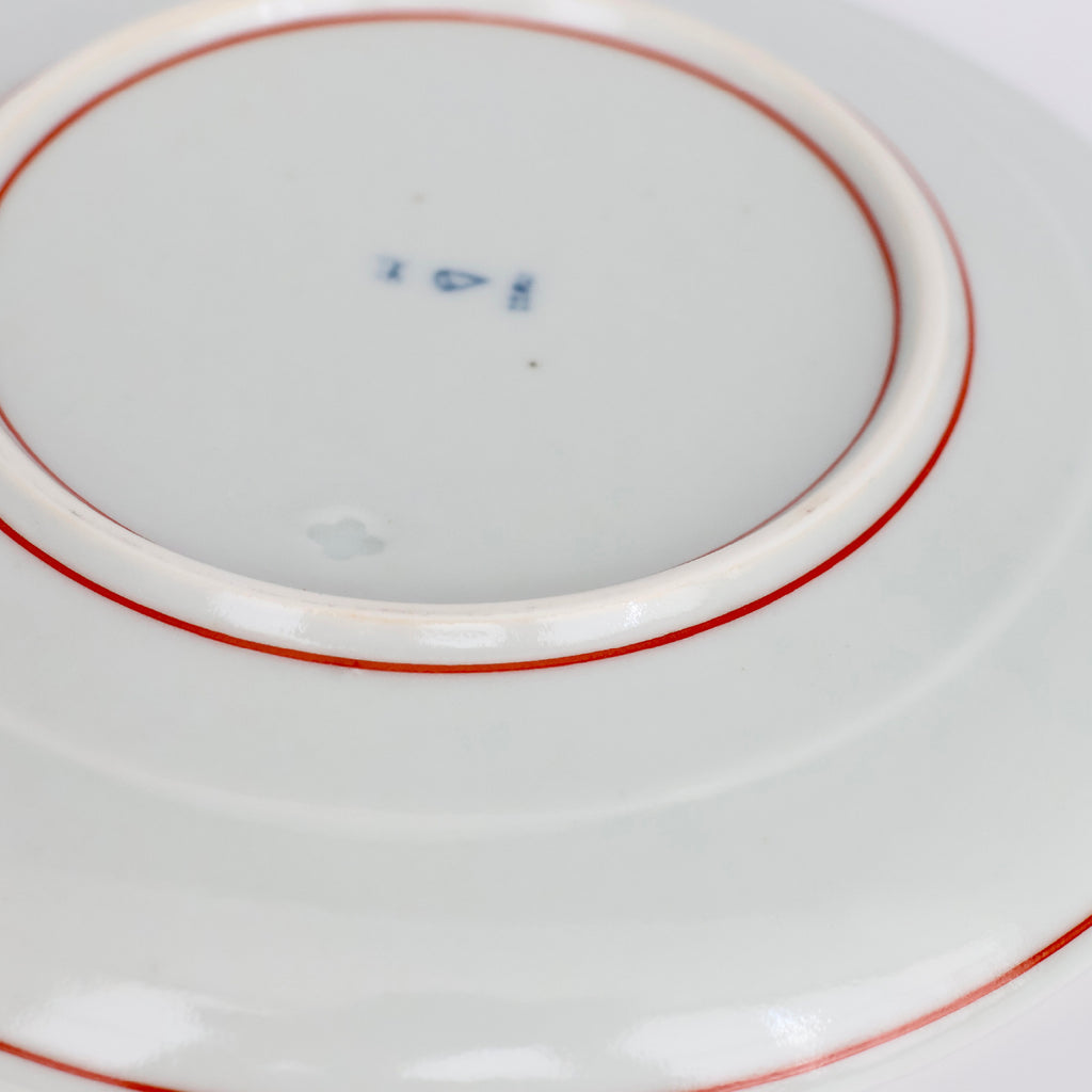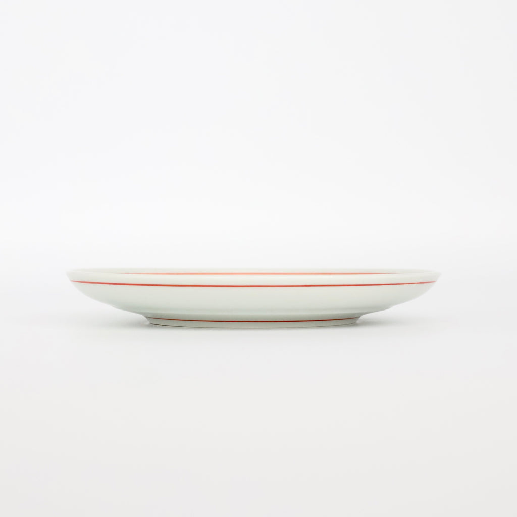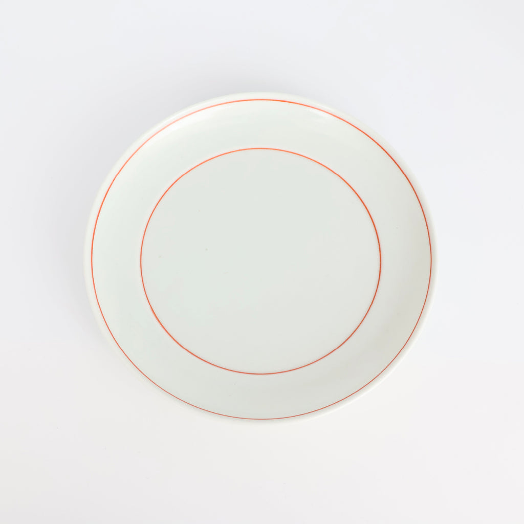 サイズは五寸。盛皿や銘々皿として、どんな機会にでも活躍する名脇役。人が集まるときには、何枚あっても重宝します。赤絵の輪線が迎春にぴったり。