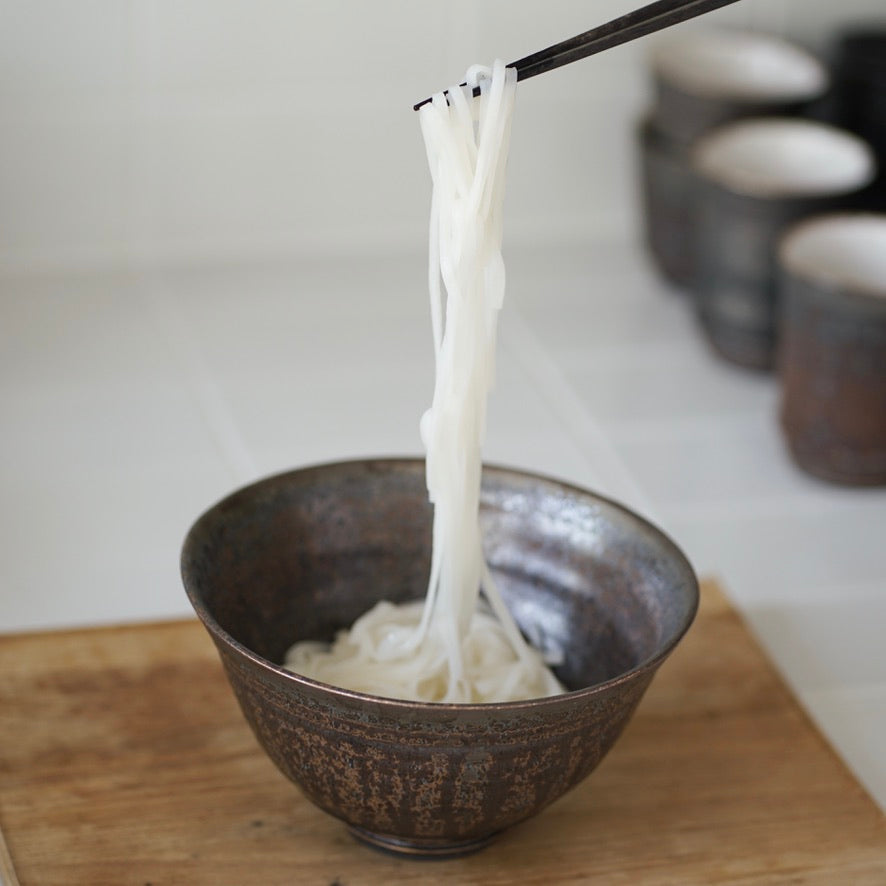 原材料のお米と澱粉は100%国産で、白米を使用した「白米めん」と、玄米を使用した「玄米めん」の二種類をご用意。