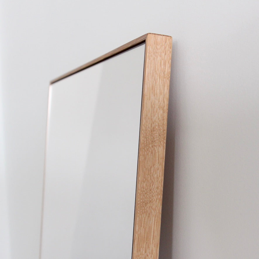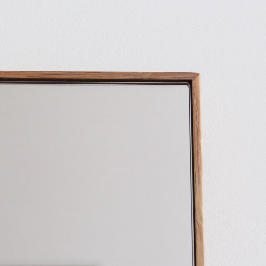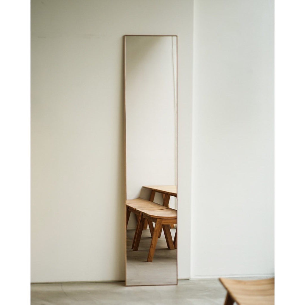 そうして出来上がった姿見は、全身が丁度よく収まる絶妙なサイズで、どんなインテリアであっても最初からそこにあったかのように馴染みます。使わない時は裏返しておくだけで、邪魔にならず美しい木肌も堪能できます。まさに両A面ともいえる、究極の姿見。