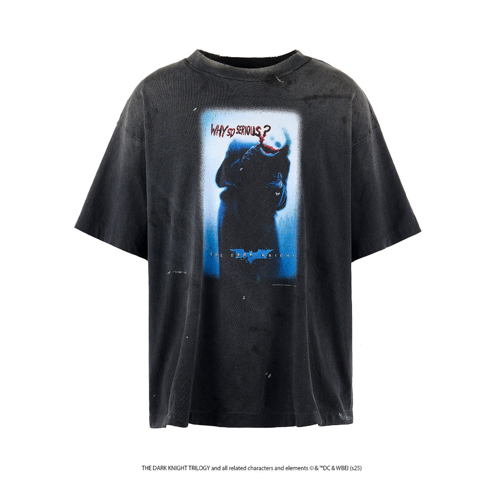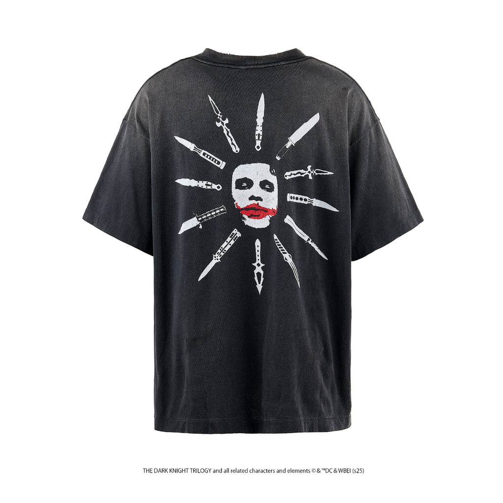 劇中でも見る人に深い印象を与えたThe Jokerのポスタービジュアルをピックアップし、 Tシャツに落とし込みました。アイコニックなデザインにリアルなヴィンテージ加工を施し、 ©SAINT Mxxxxxxらしさを加えた特別なアイテムとなっております。