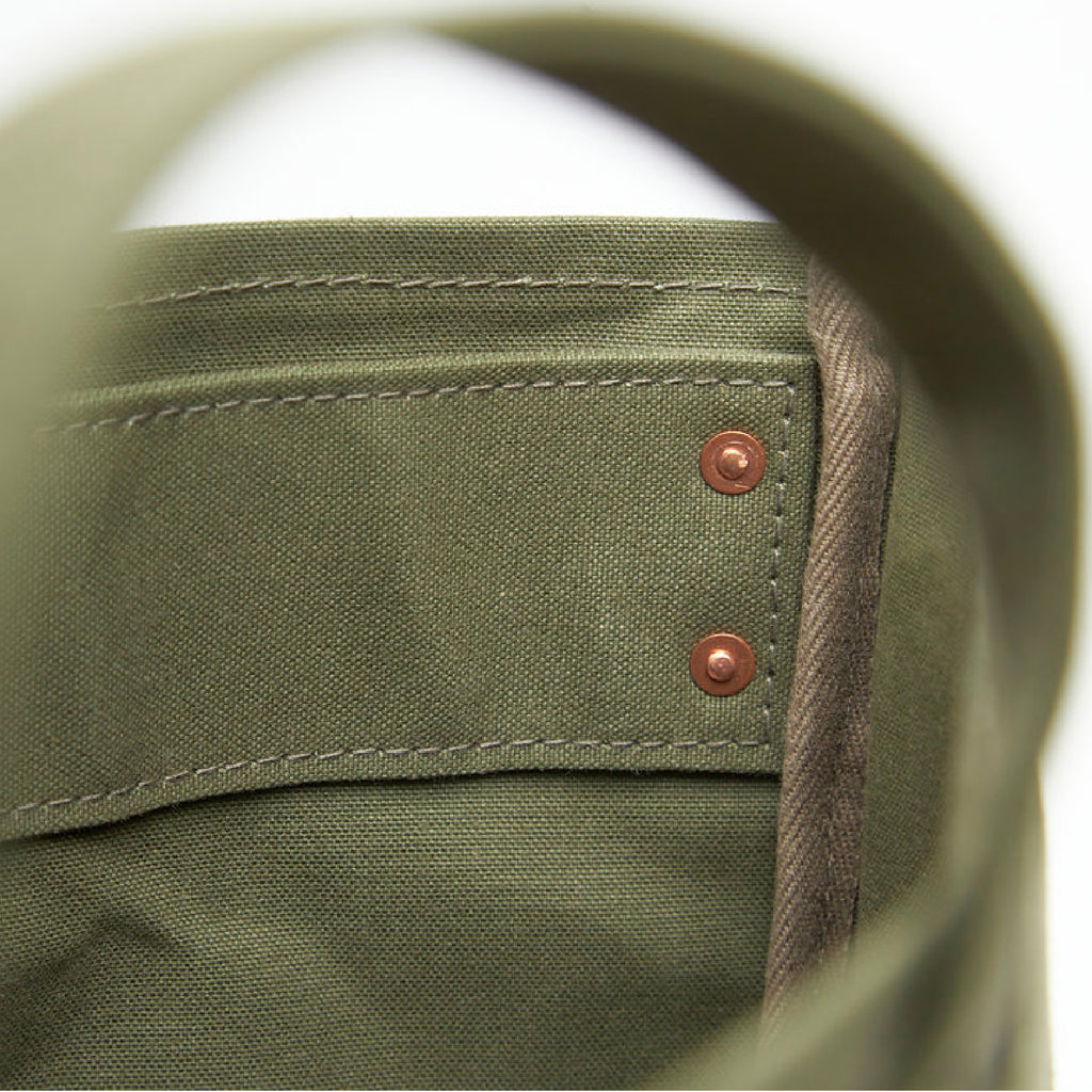 重たい荷物の運搬を想定して作られていたCoal Bag特有の短いハンドルを採用し、実用性と無骨さを併せ持ったデザインです。