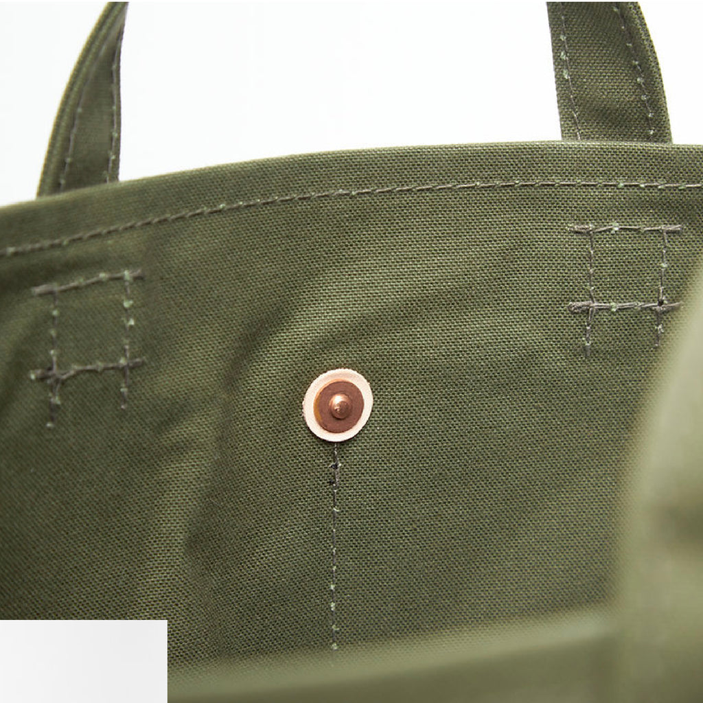 使用している生地は、細い糸を撚糸し織物組織の密度を高めることで、同じ重量の号物ダックと比較して厚みは抑えながらも、より堅牢で高密度に仕上げられた当時のUSアーミーダック規格を忠実に再現した本格的なアーミーダックを採用しています。