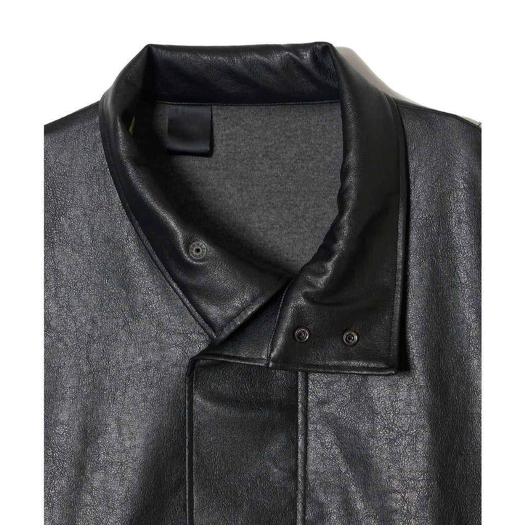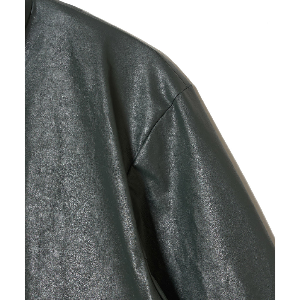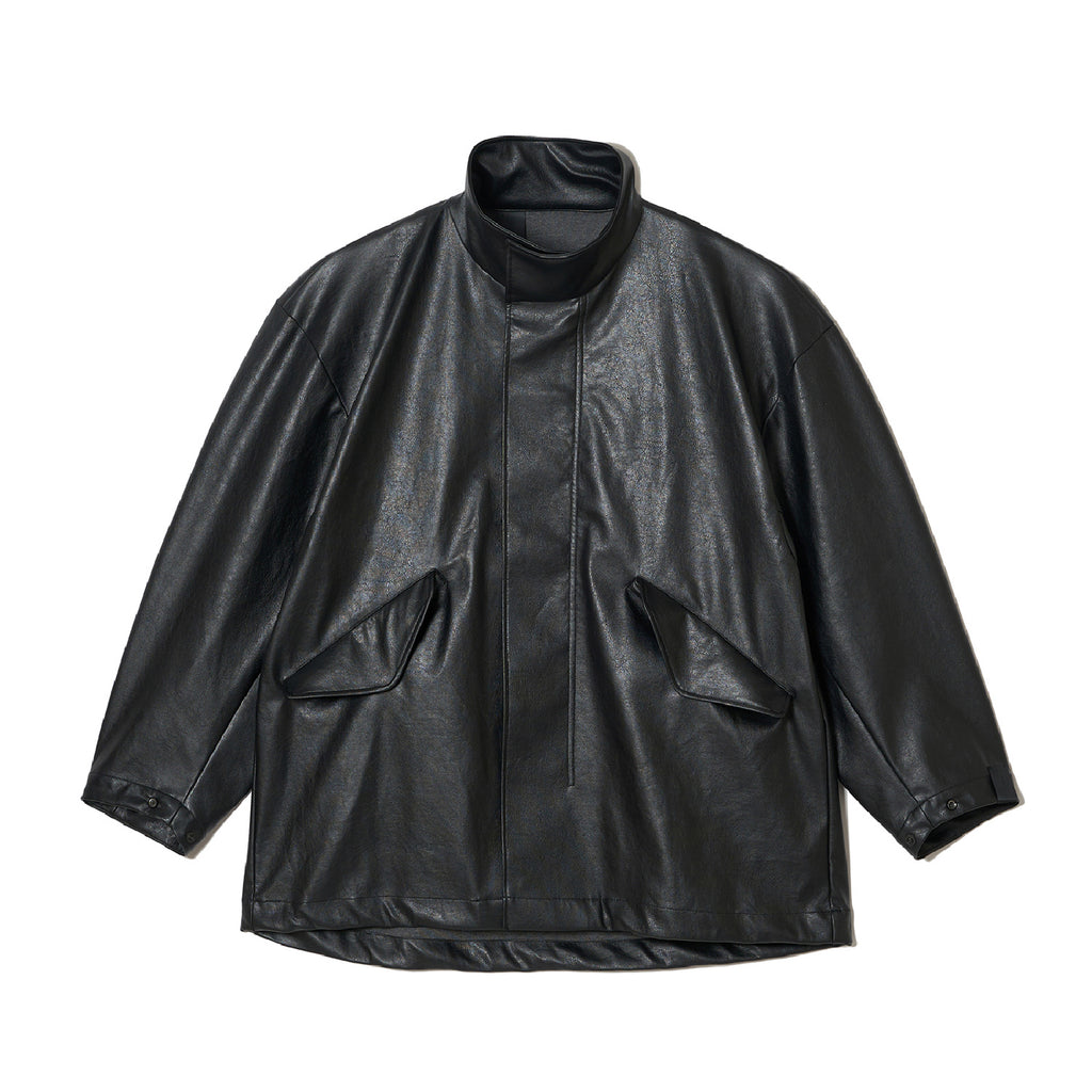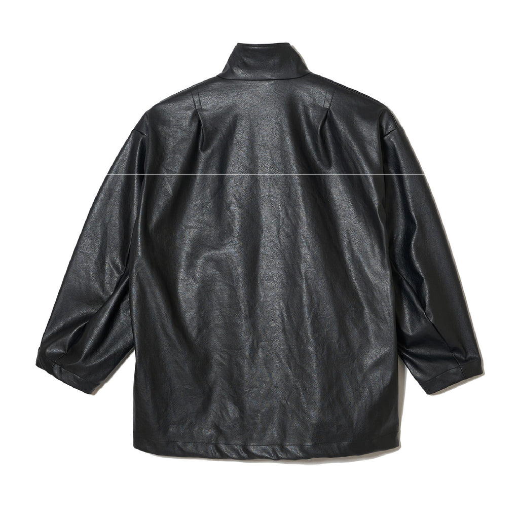 ・裏基布にポリエステルコットンを採用した、カーフレザー調のシンセティックレザー。バイオ加工を施すことで、洗いをかけたような独特のシワ感、風合いを表現。また、程よくコシの抜けた柔らかさで、着心地の良さも向上。