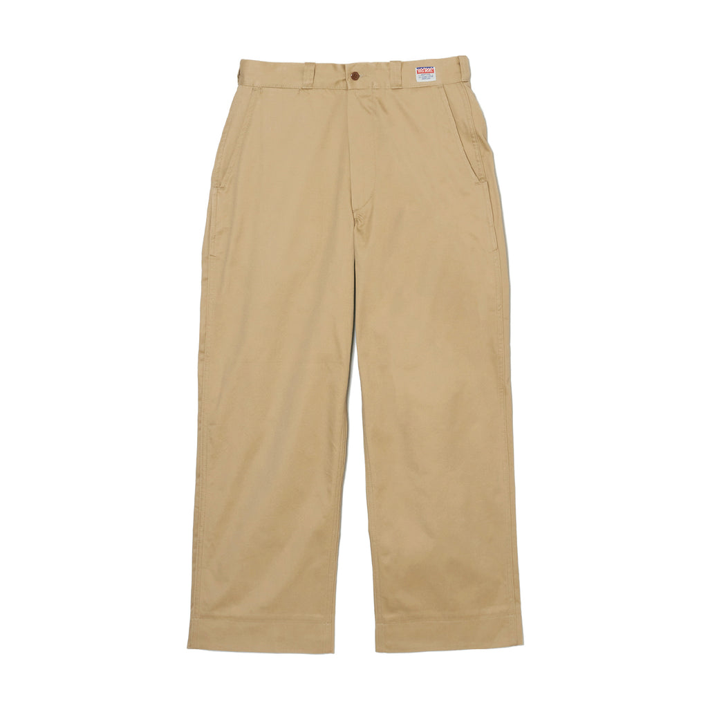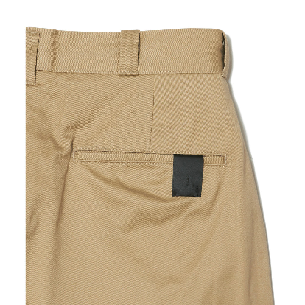 ・所有するモデルの中でも GRAY と BEIGE をピックアップし、当時の新品の色味を再現。ワークパンツ由来の太いベルトループ。フロントファスナーにはグリッパージッパーを採用。ウエストバンドとヒップポケットのスレーキ裏に BIG MAC タグ、右側のヒップポケットに N.HOOLYWOOD COMPILE のアイコンであるブラックのブランドネームを配置。