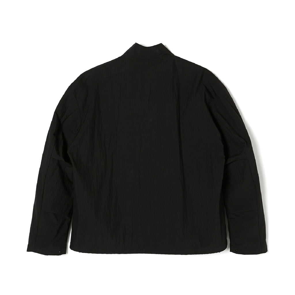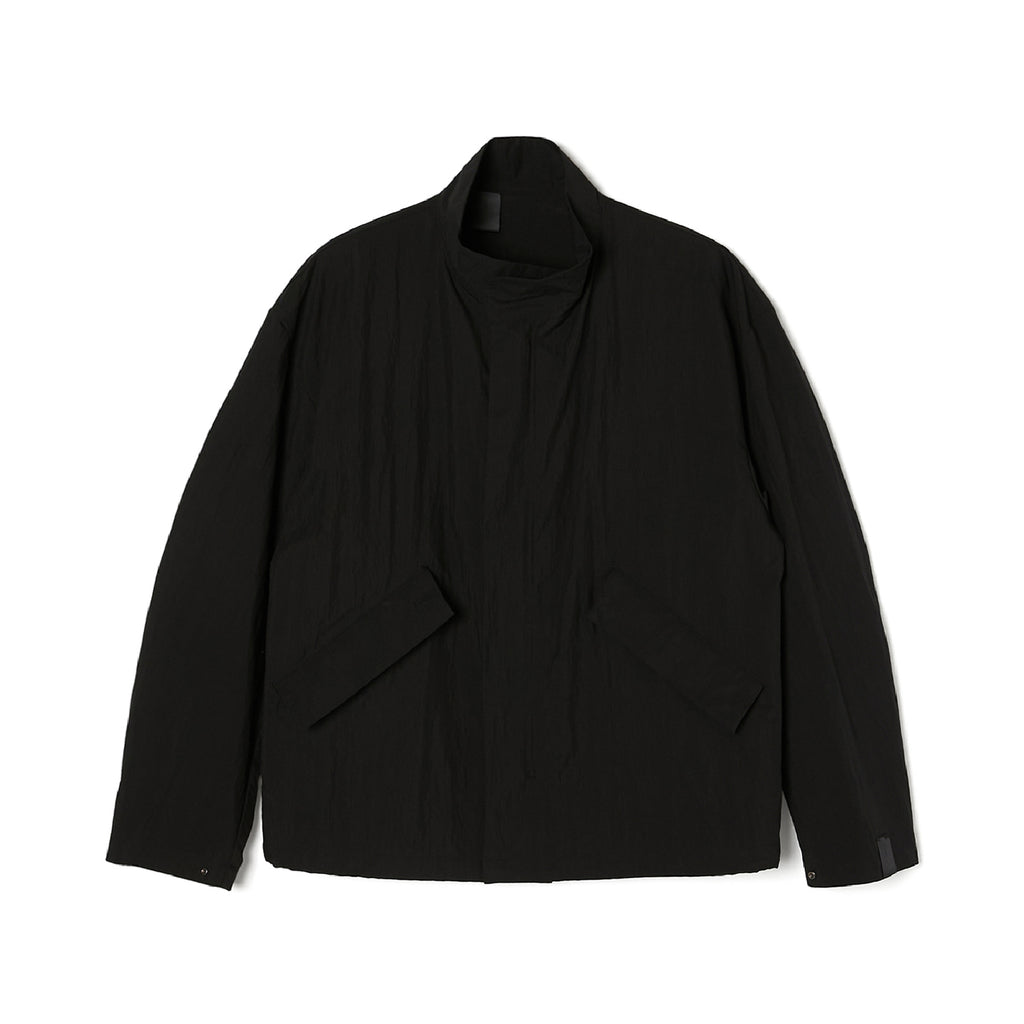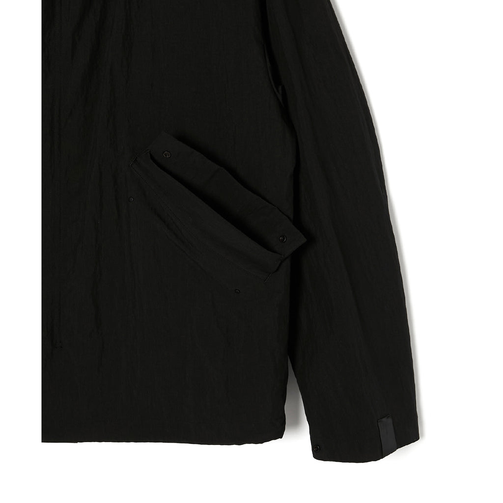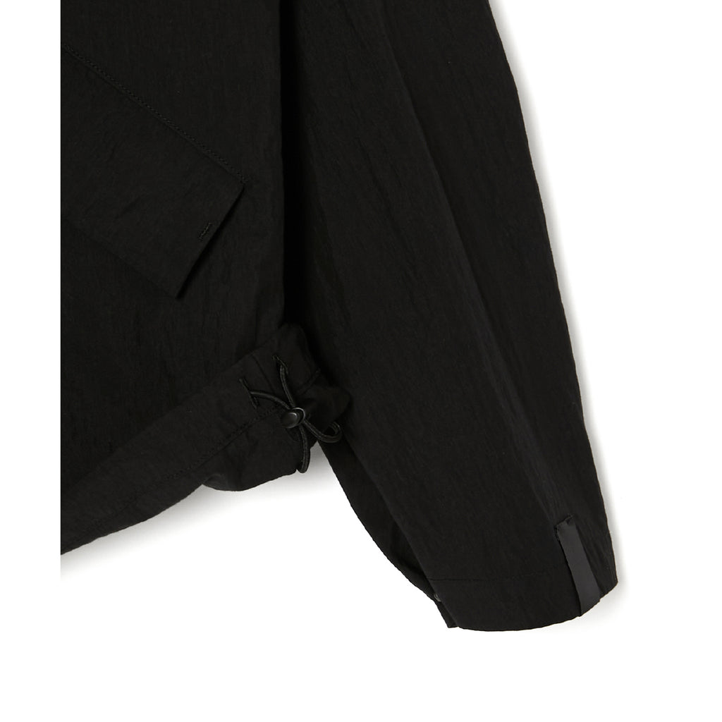 ・裏地なしの一枚仕立て。立体的にボリュームを持たせたスリーブはモッズコートのディテールを踏襲。やや引き締めたネックライン。袖先にドットボタン、裾にはゴムのスピンドルを配し、シルエットの調節が可能。フロントはミニマルなドットボタンを採用し、ファスナーにはロゴ入りのオリジナルの引き手を使用。左袖には、N.HOOLYWOOD COMPILEのアイコンであるブラックのブランドネームを配置。