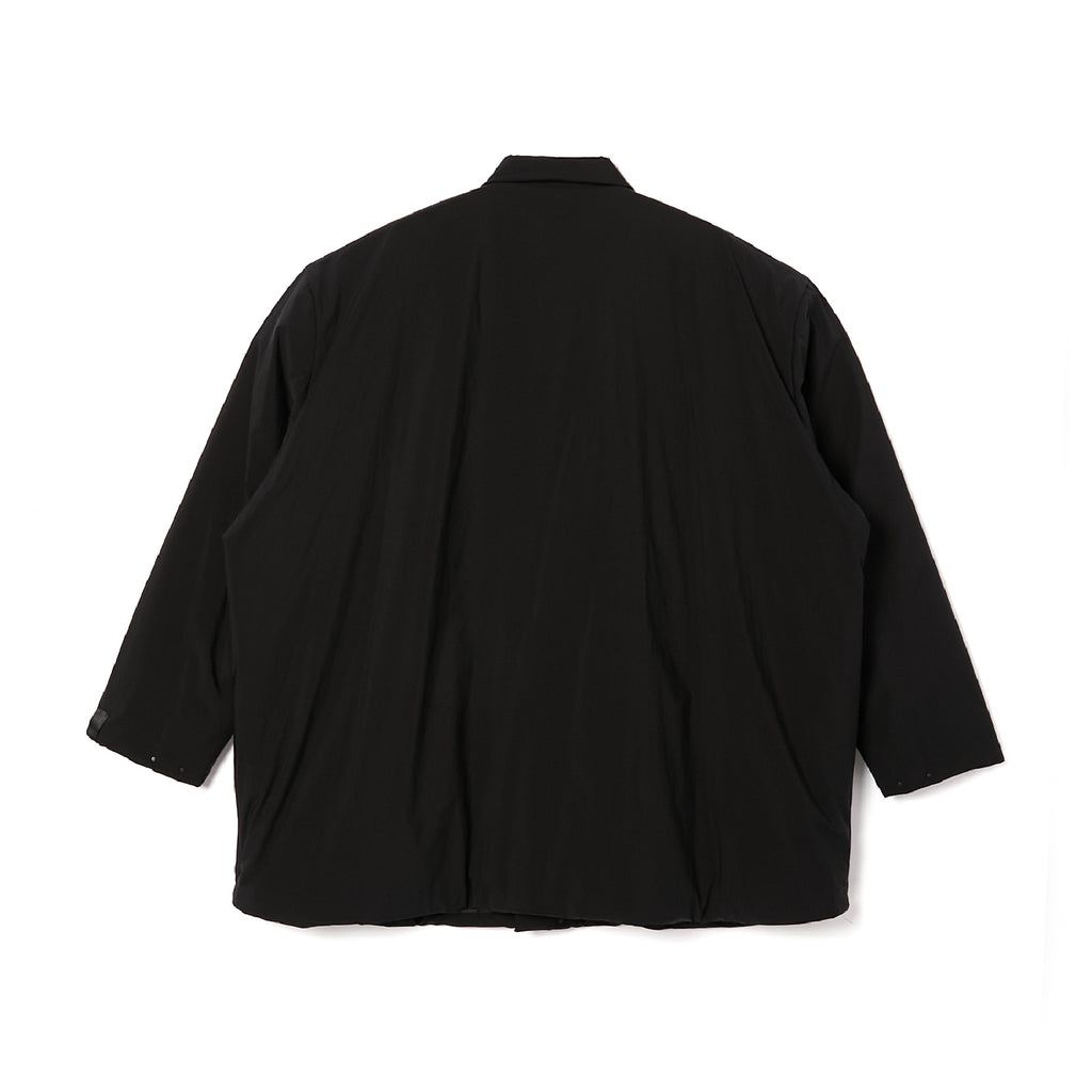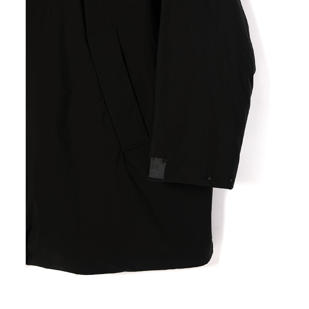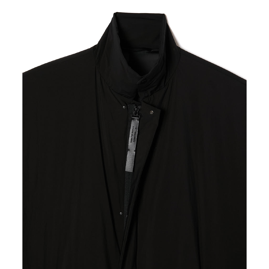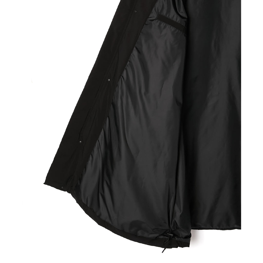 ・通常のコートに比べ、小さめの襟にデザイン。フロントのファスナーはブランドロゴを刻印したオリジナルのレザー引き手を採用。前立て、襟元、袖先にはブラックに染めた小さなドットボタンを使用し、ソリッドな印象に。襟元はスタンドカラーにアレンジ、袖先はアジャストが可能。内ポケット付き。裾に配したドローコードでシルエットの調節が可能。軽量かつ保温性の高いプリマロフトを封入。左袖にはN.HOOLYWOOD COMPLEのアイコンであるブラックのブランドネームを配置。