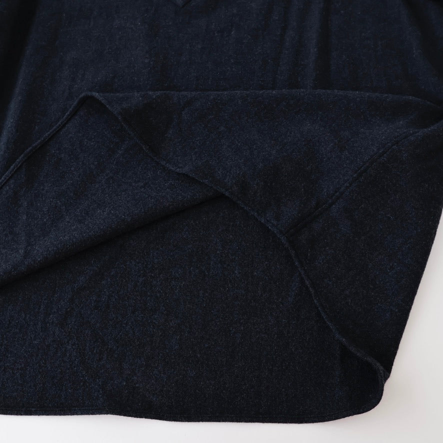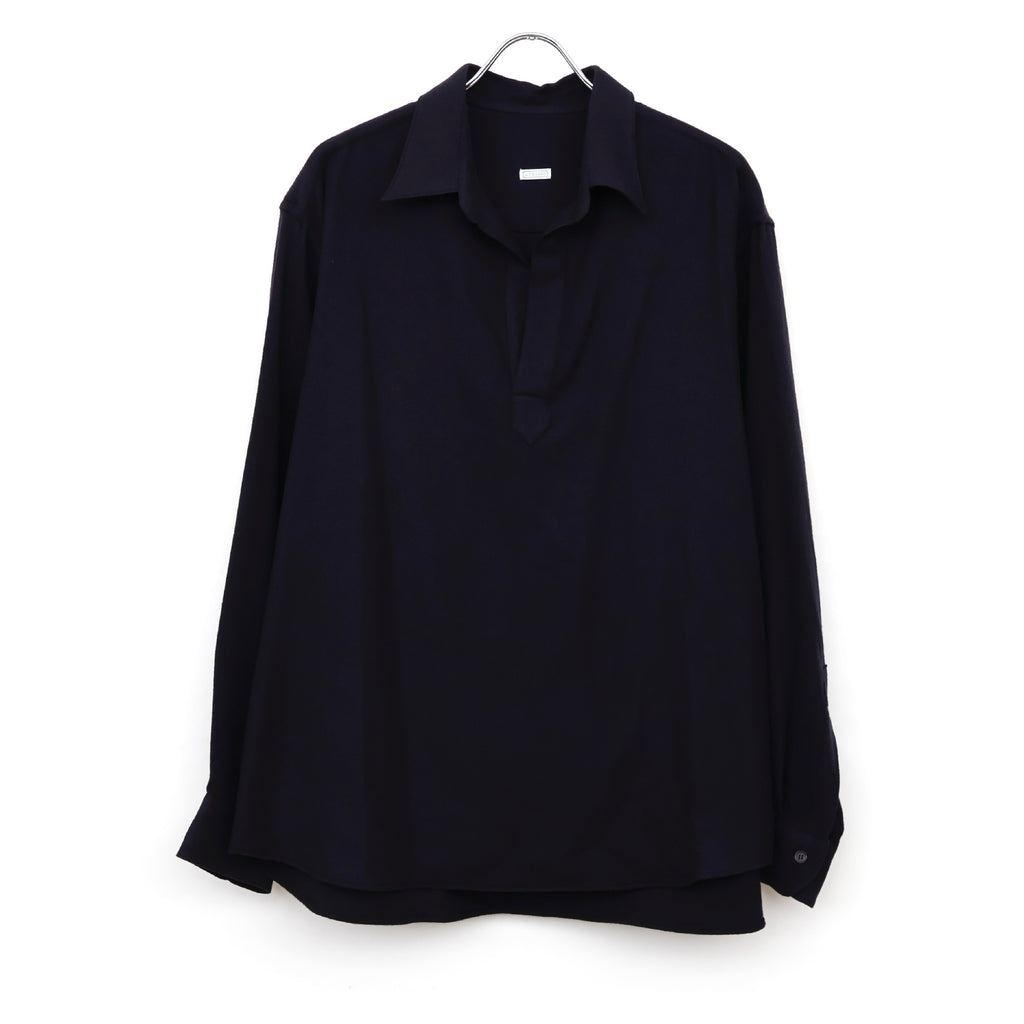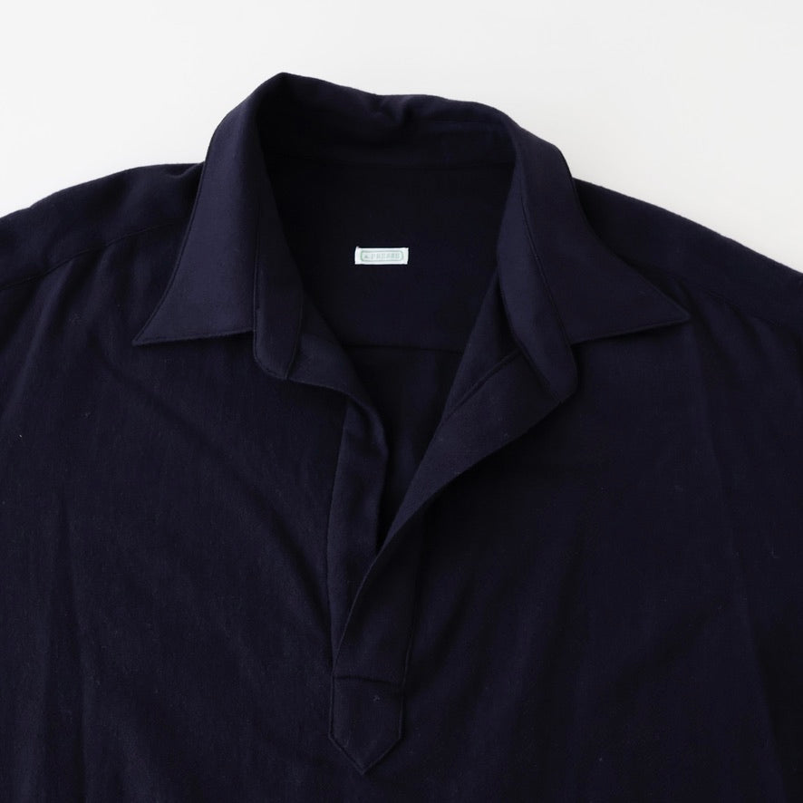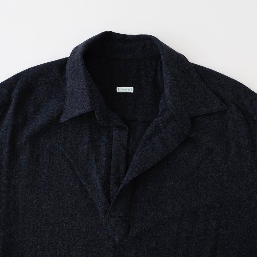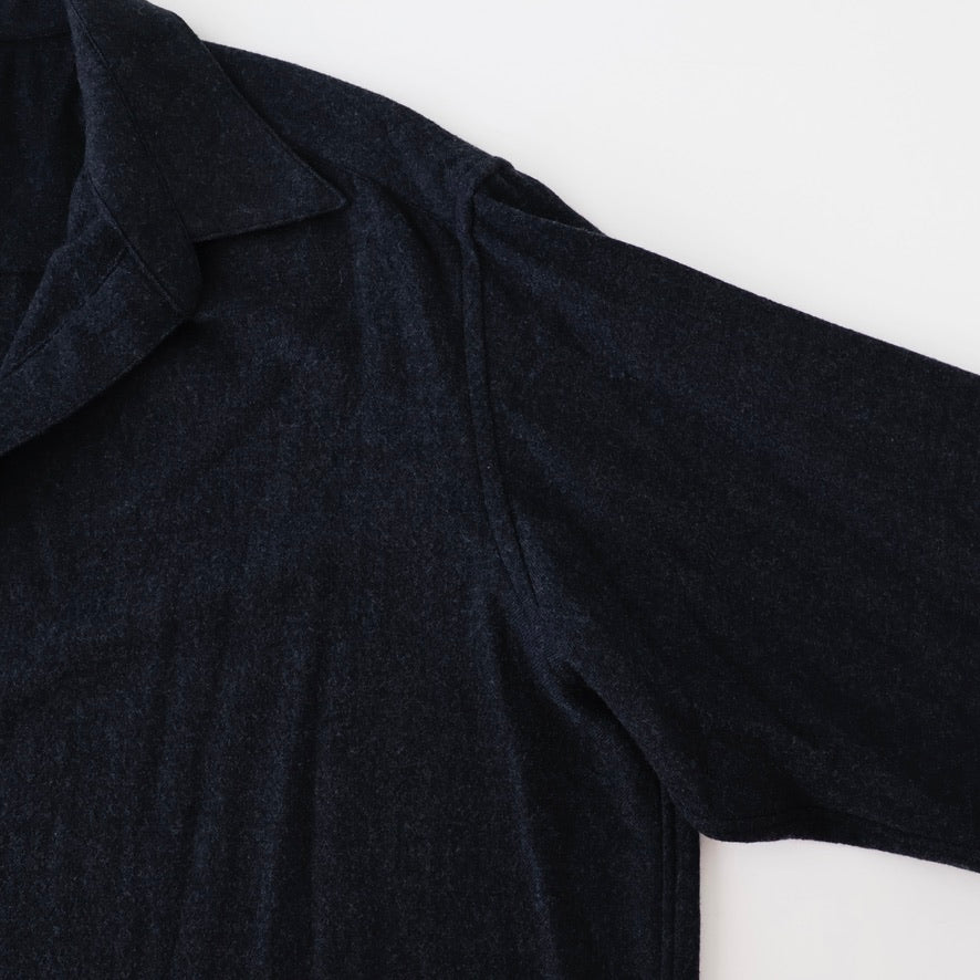 それをベースにボタンレスのスキッパーデザインにアレンジしたゆったりとした。オーバーサイズシルエット。