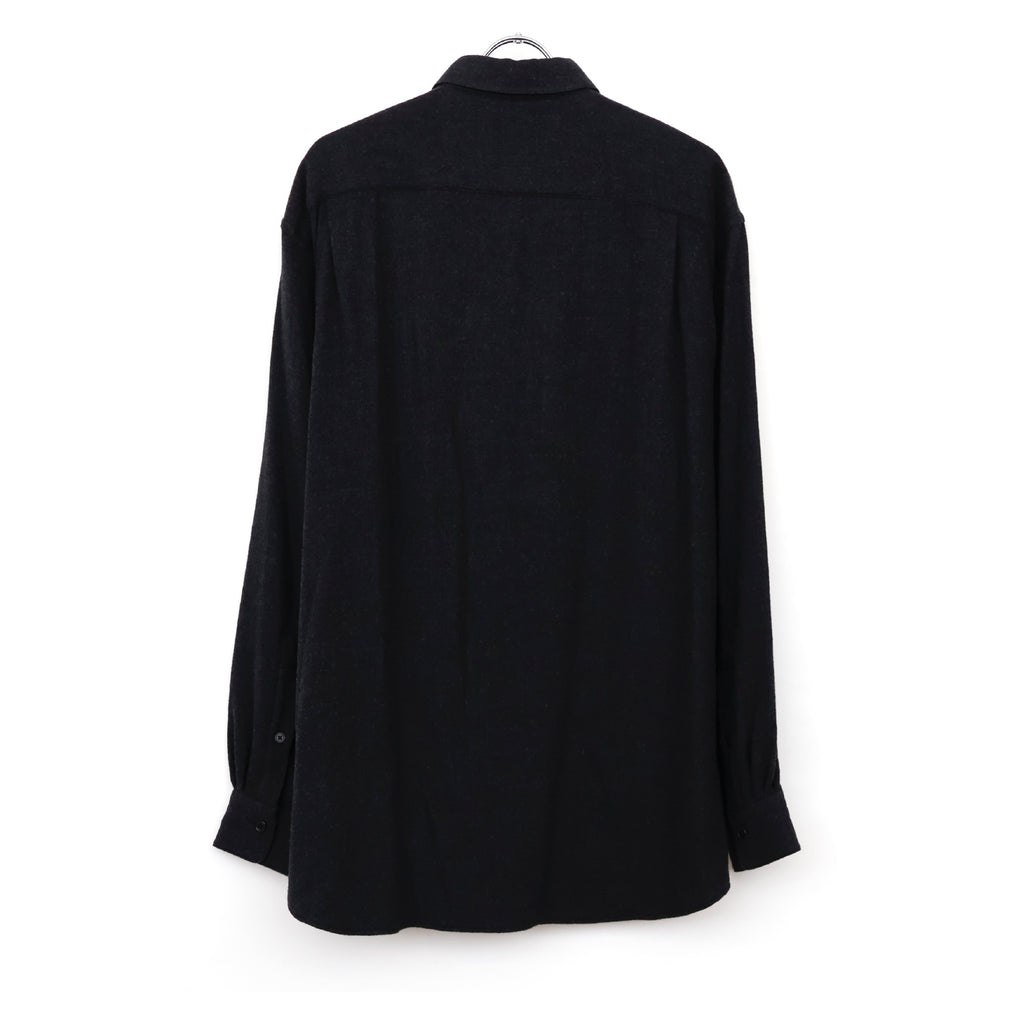 ゆったりとしたオーバーサイズシルエットで身頃のボリュームに対してやや小ぶりな襟のバランスが特徴。