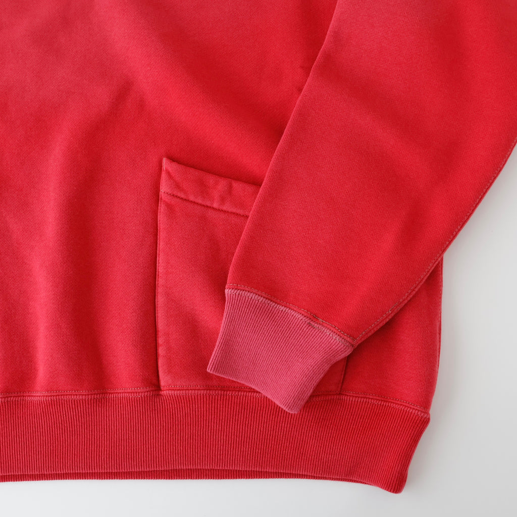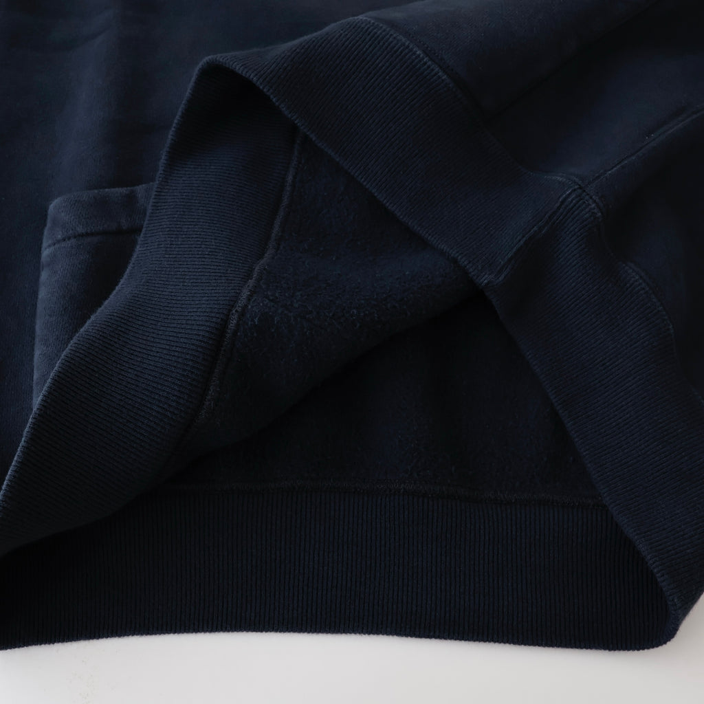 裏起毛生地はベースアイテムの糸を解析し作成。表糸が少し太番手で、裏糸の起毛具合もヴィンテージの経年変化した半起毛が特徴。