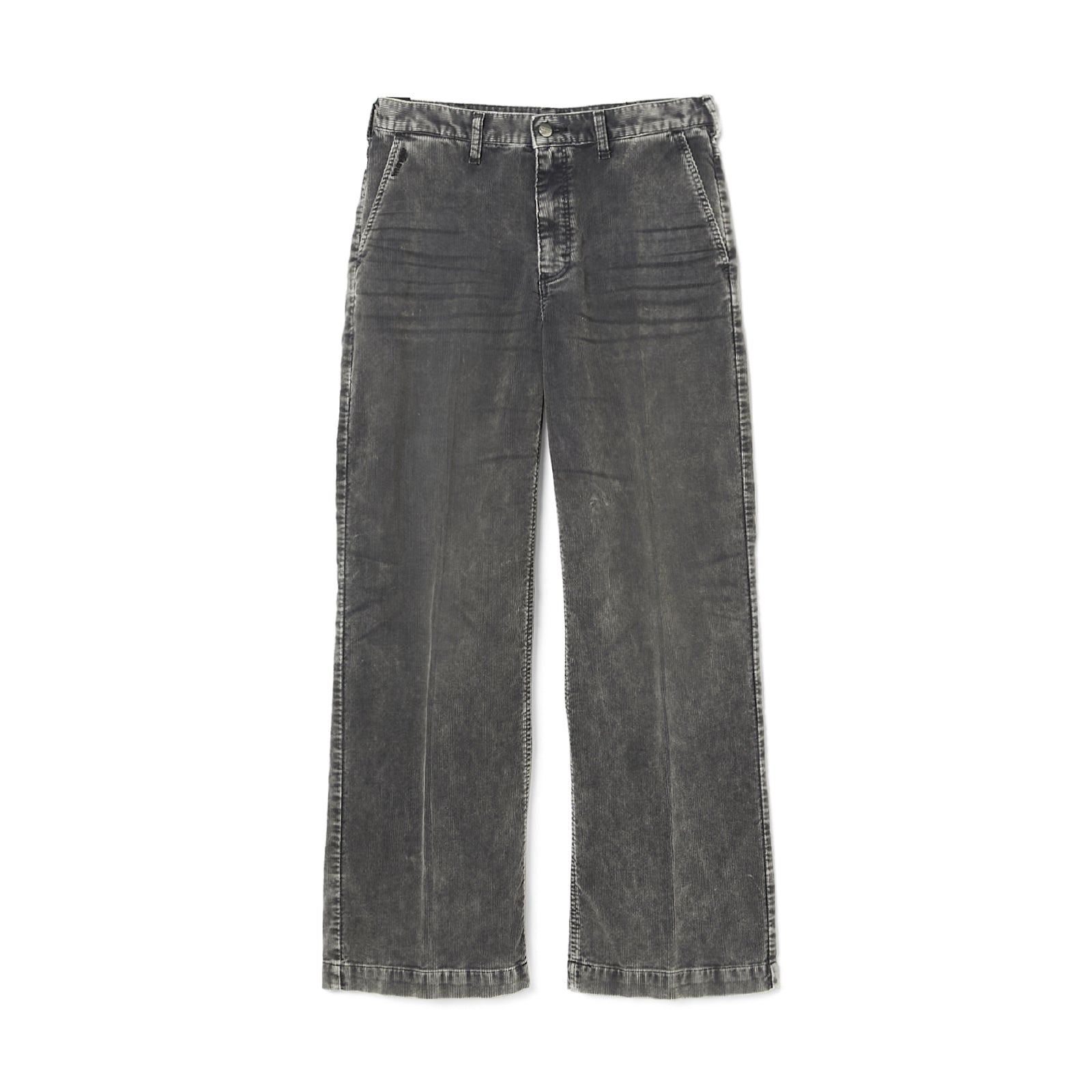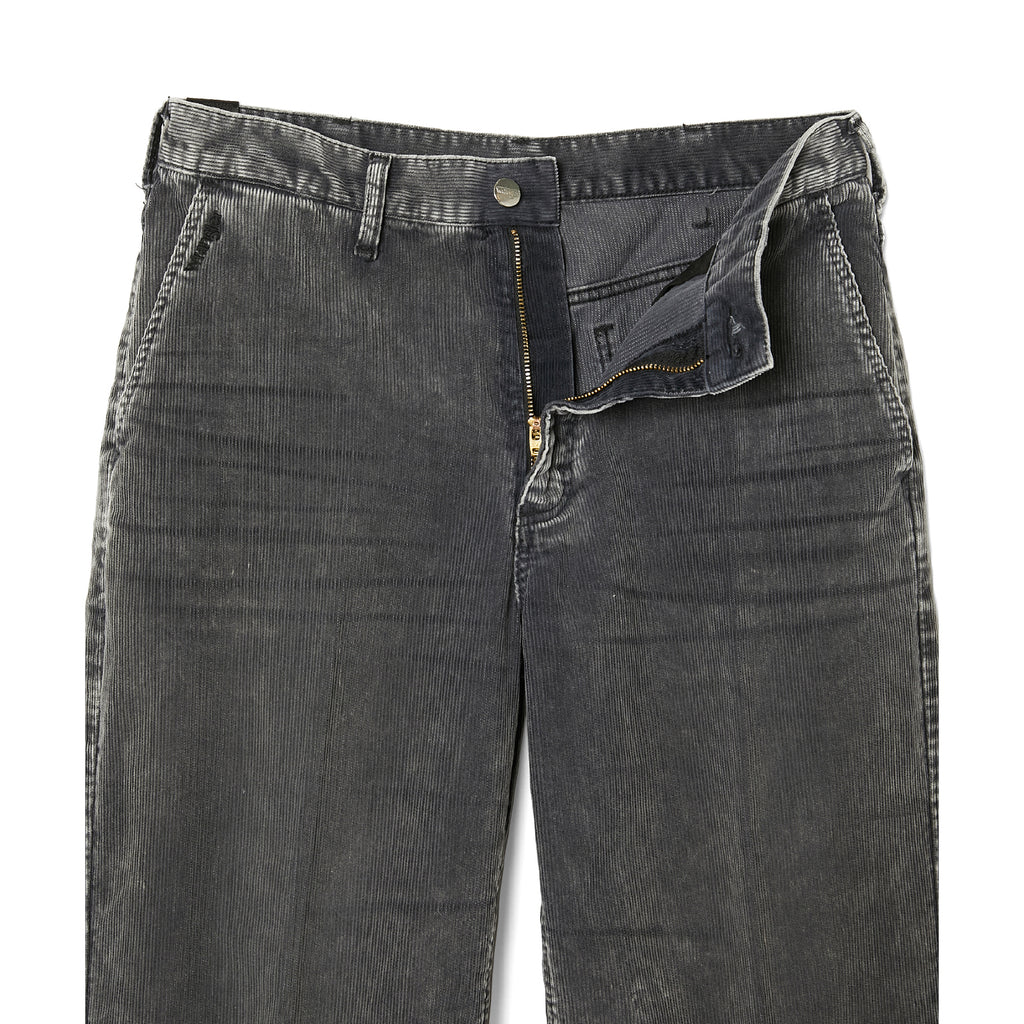 ・硫化染めをした14ウェールのコーデュロイ素材。ストーンバイオウォッシュ加工を施し、ヴィンテージの雰囲気を演出。