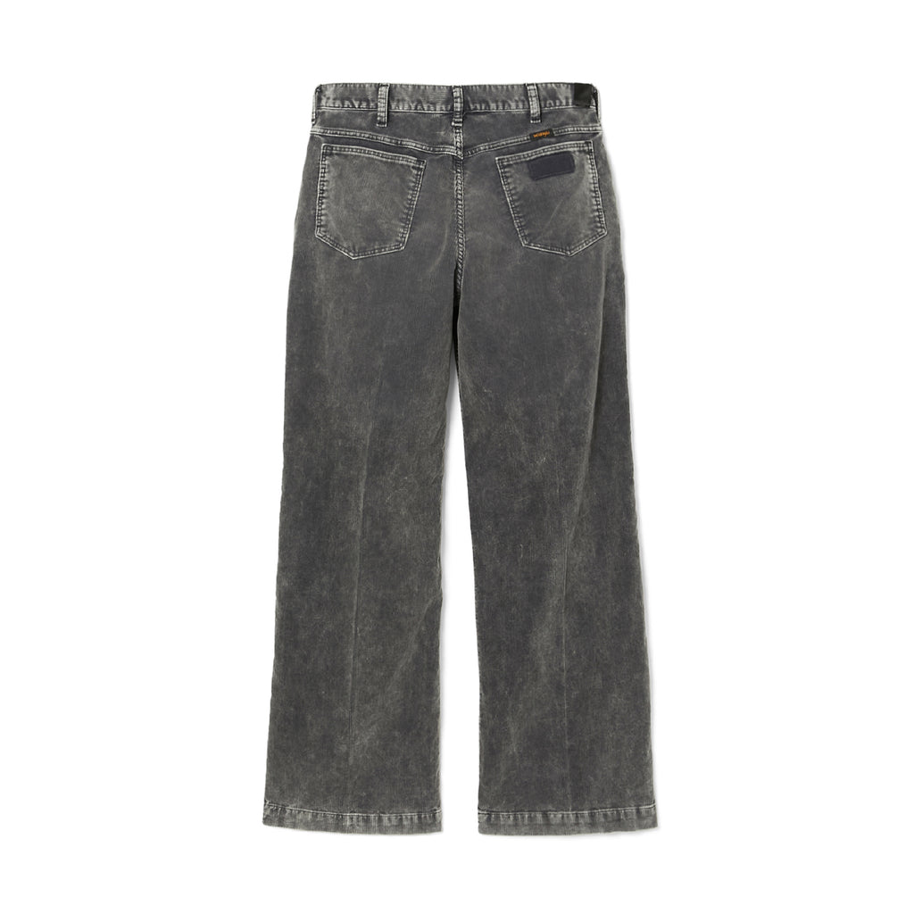 ・股上をやや浅めに設定し、腰回りをすっきりと見せることで、クリースラインが際立つ美しいストレートシルエットに。スラッシュポケットのラインに沿ってWranglerのロゴを同色でエンブロイド。ヒップポケットには経年によって剥がれ落ちたレザーパッチの跡を再現。