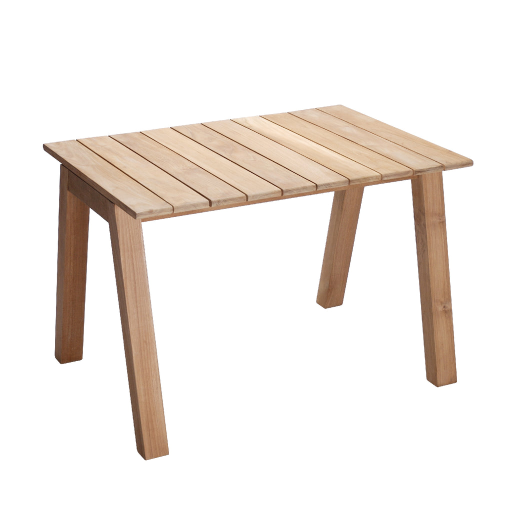 95mm巾の板と5mmの目地で構成した95+5はインドネシアの誠実なチーク材を使用しています。ガーデンという環境を「外部空間」と捉えるのではなく、ベランダやテラスのように内と外の狭間を意識して内部空間に置いても違和感のないような形にこだわりました。そして95mm巾の板は人に関わる部分で、丸面にしたり曲面にしたりと身体との関係を整え、生活環境の中でも使い心地の良い家具を目指しています。