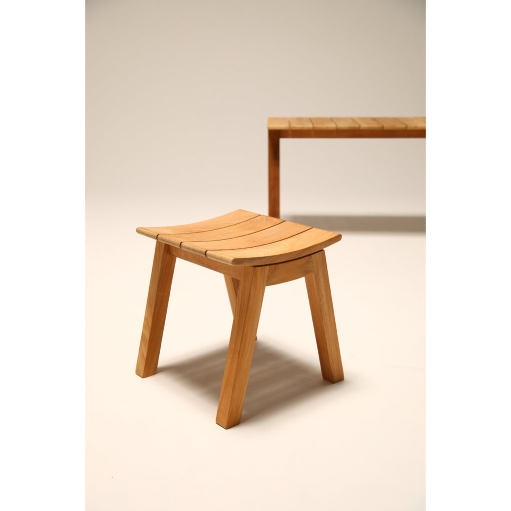 95mm巾の板と5mmの目地で構成した95+5はインドネシアの誠実なチーク材を使用しています。ガーデンという環境を「外部空間」と捉えるのではなく、ベランダやテラスのように内と外の狭間を意識して内部空間に置いても違和感のないような形にこだわりました。そして95mm巾の板は人に関わる部分で、丸面にしたり曲面にしたりと身体との関係を整え、生活環境の中でも使い心地の良い家具を目指しています。