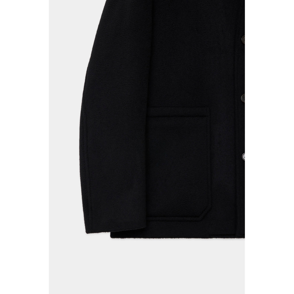 ミニマルなデザインがモダンな印象を与える新型「WORK JACKET」。カバーオールを思わせるカジュアルなデザインを、贅沢にカシミアで仕立てました。テーラードジャケットのような高い袖山と前振りのスリーブにより、ワークジャケットでありながらジャケットとしての美しさも追求。腰部分の大きめのパッチポケットがアクセントとなっています。