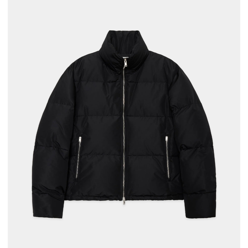 インナーとのレイヤードを楽しめるショート丈に仕立て、しっかりと詰めたダウンによる美しいボリューム感を表現しています。ポケット内のストッパーで裾を絞ることで、シルエットのアレンジも可能です。