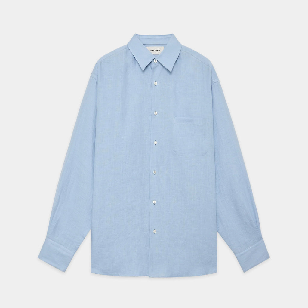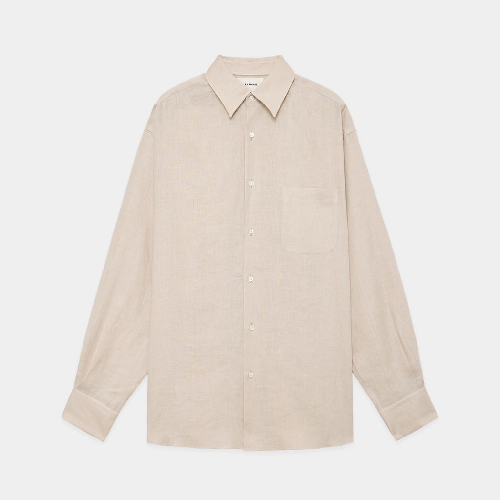 ややゆったりなサイズ感が特徴の「COMFORT FIT SHIRT」。身幅は程よくゆとりもたせ、それに合わせて袖も太めに。着丈はそこまで長すぎず、小柄な体型でも着やすいシルエットです。前立てや襟、カフスなどはステッチを省き、遊びのあるシルエットを活かす極めてシンプルなデザインに仕立てています。