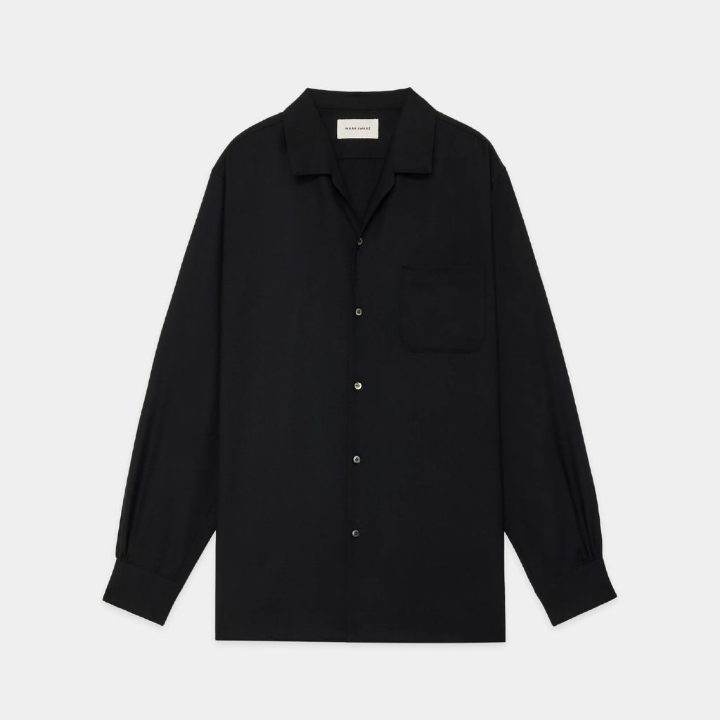 襟と見返しに切り替えのない、イタリアンカラーを採用した「Italian Open Collar Shirt」。