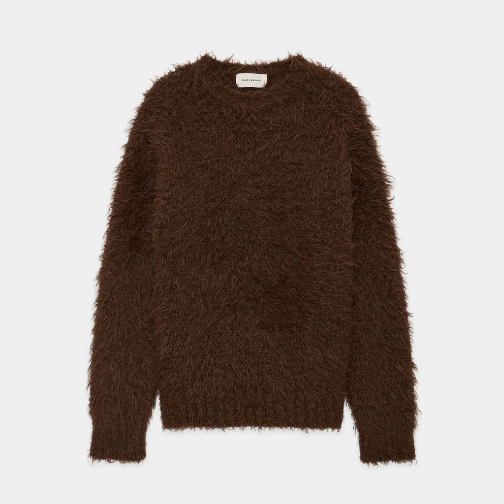 ドロップショルダーのジャンパー型クルーネックセーター「Alpaca Fur Jumper」。