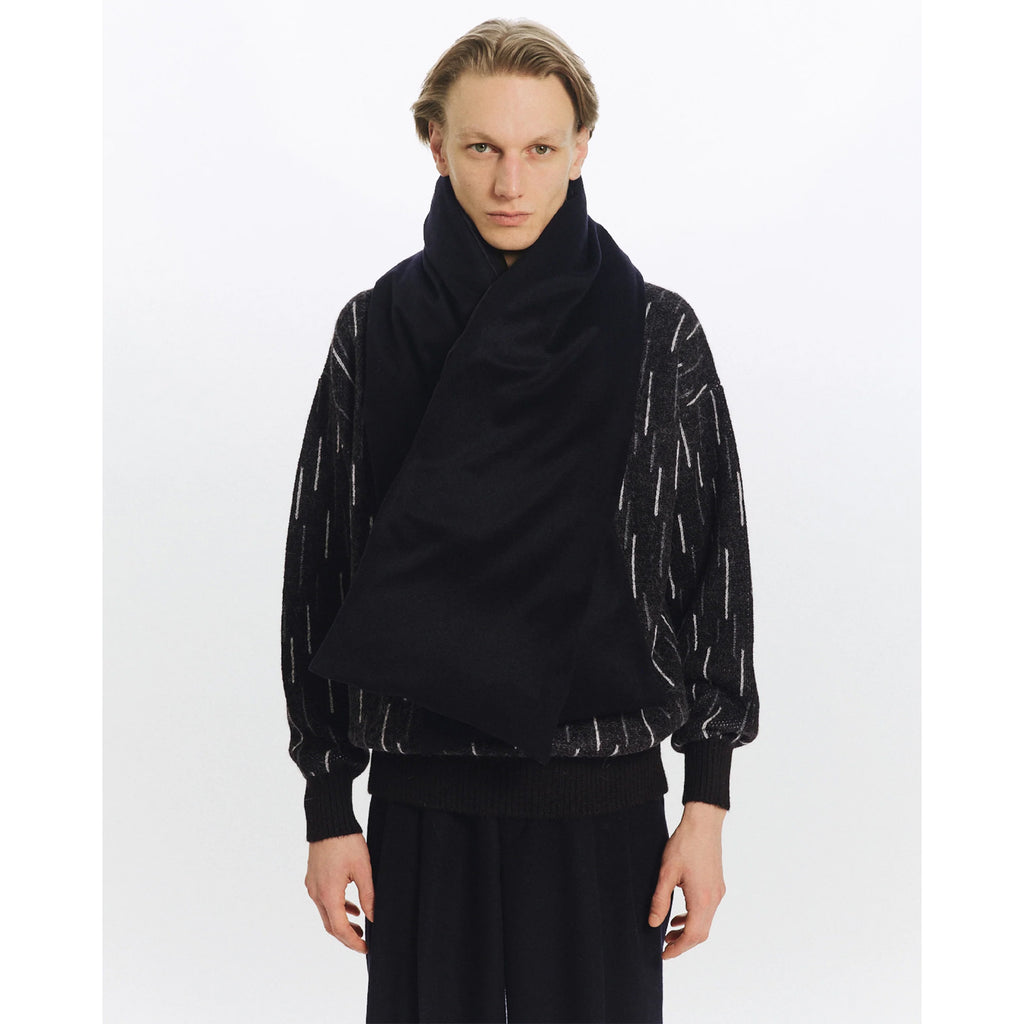 片面にカシミヤ、反対面にシルクタフタを用いたリバーシブル仕様の「Muffler With Magnet」。