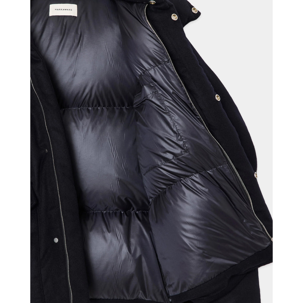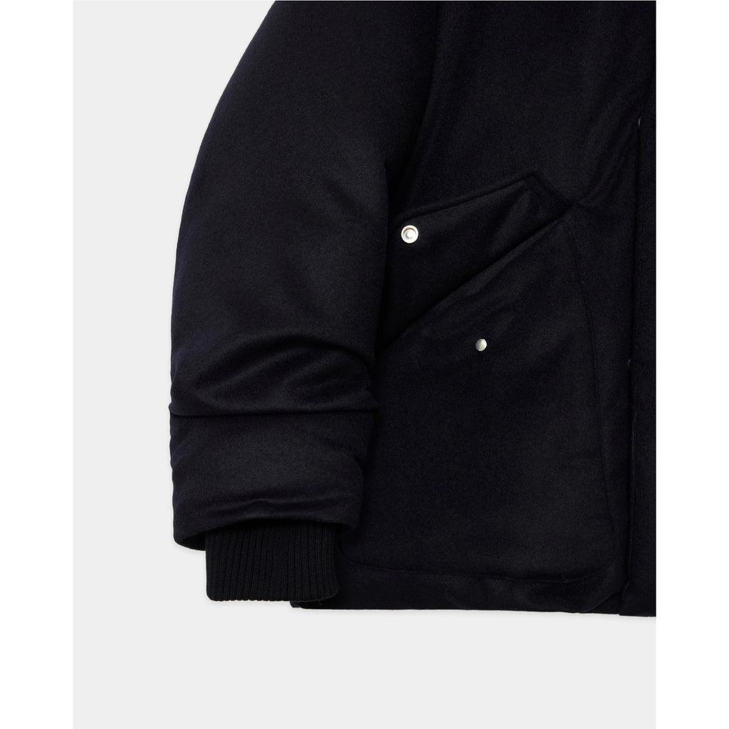 表面のキルトステッチを省き、ダウンパックの上からカシミヤ生地を重ねることでクリーンな印象に仕上げています。