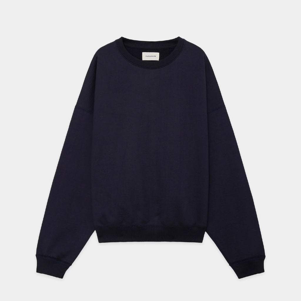 ベーシックなクルーネックスウェットを、自然なドロップショルダーと360度美しいフォルムに再構築。