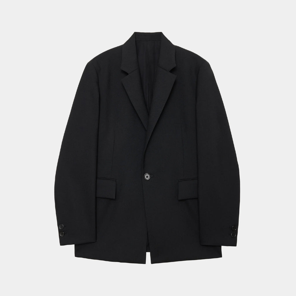 構築的な仕立てと素材のハリ感を最大限に引き出したジャケット「Square Jacket」。
