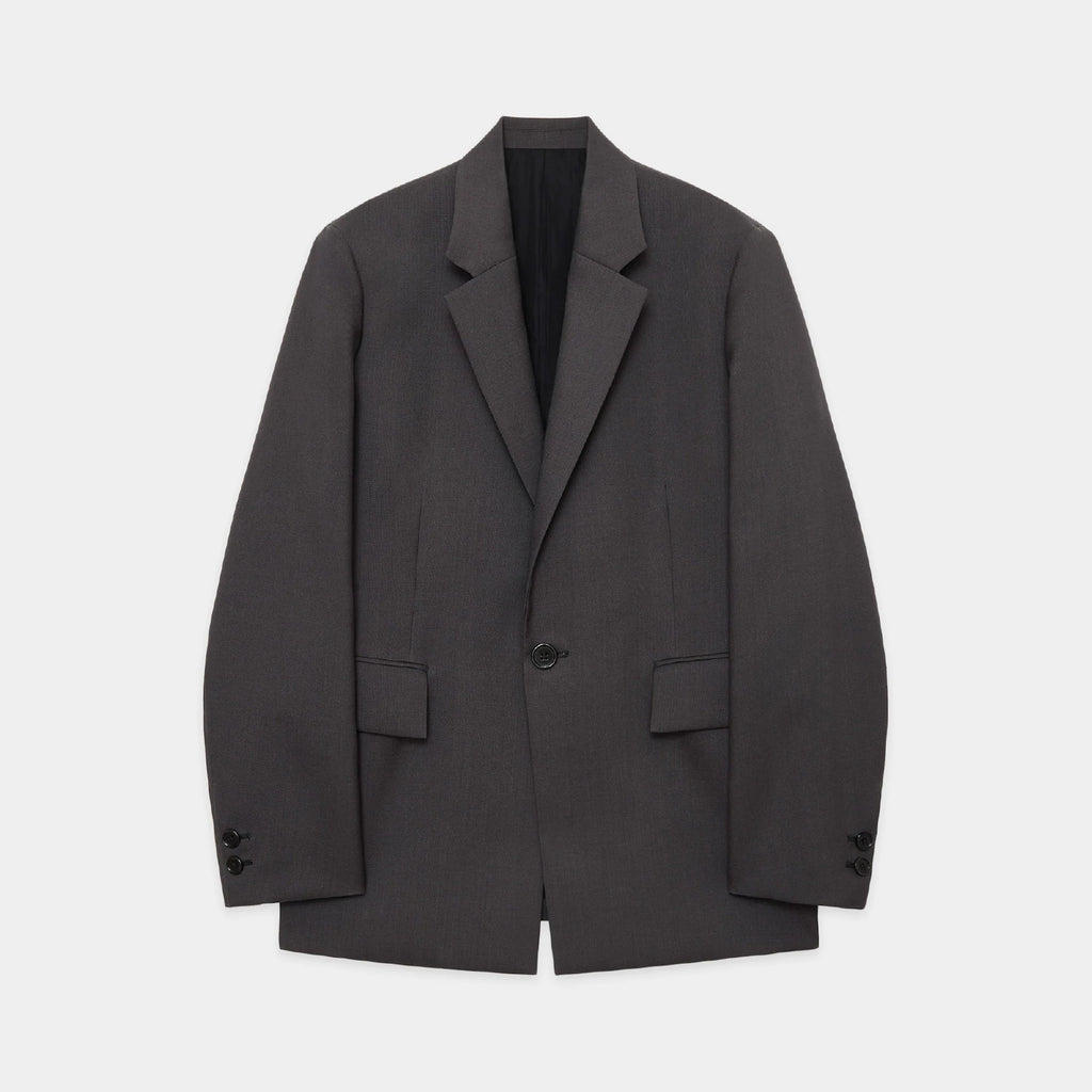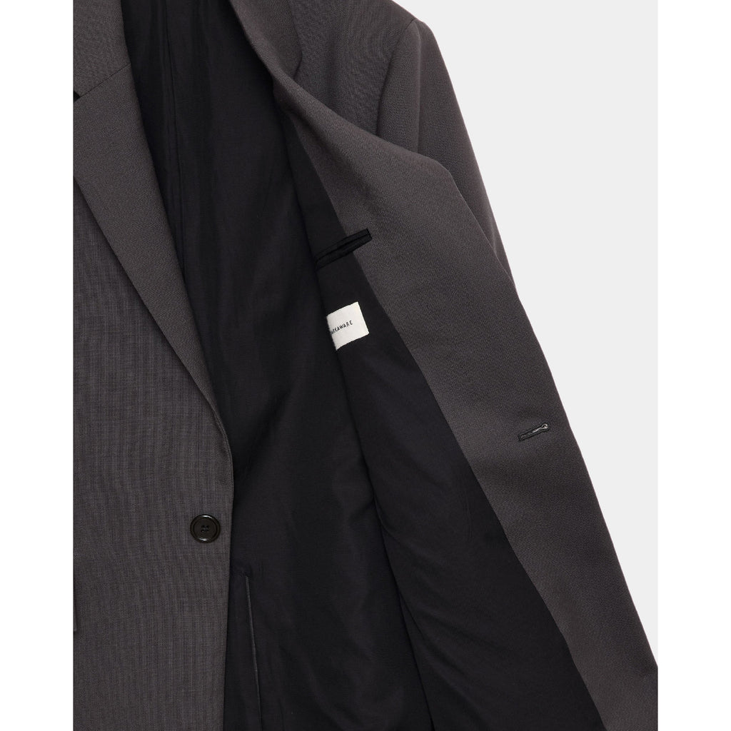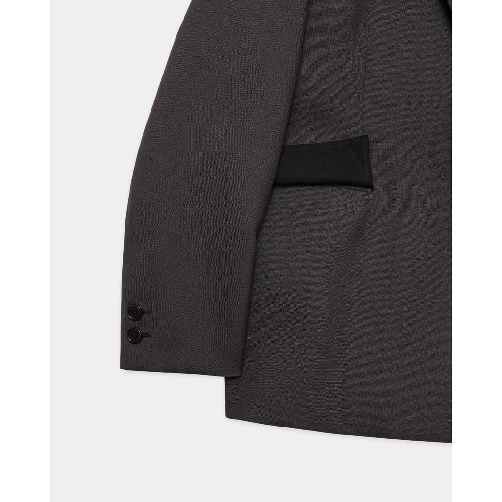 肩まわりから身頃にかけて計算された設計により、ウールトロピカル特有のコシを活かした立体的で端正なフォルムを実現しています。
