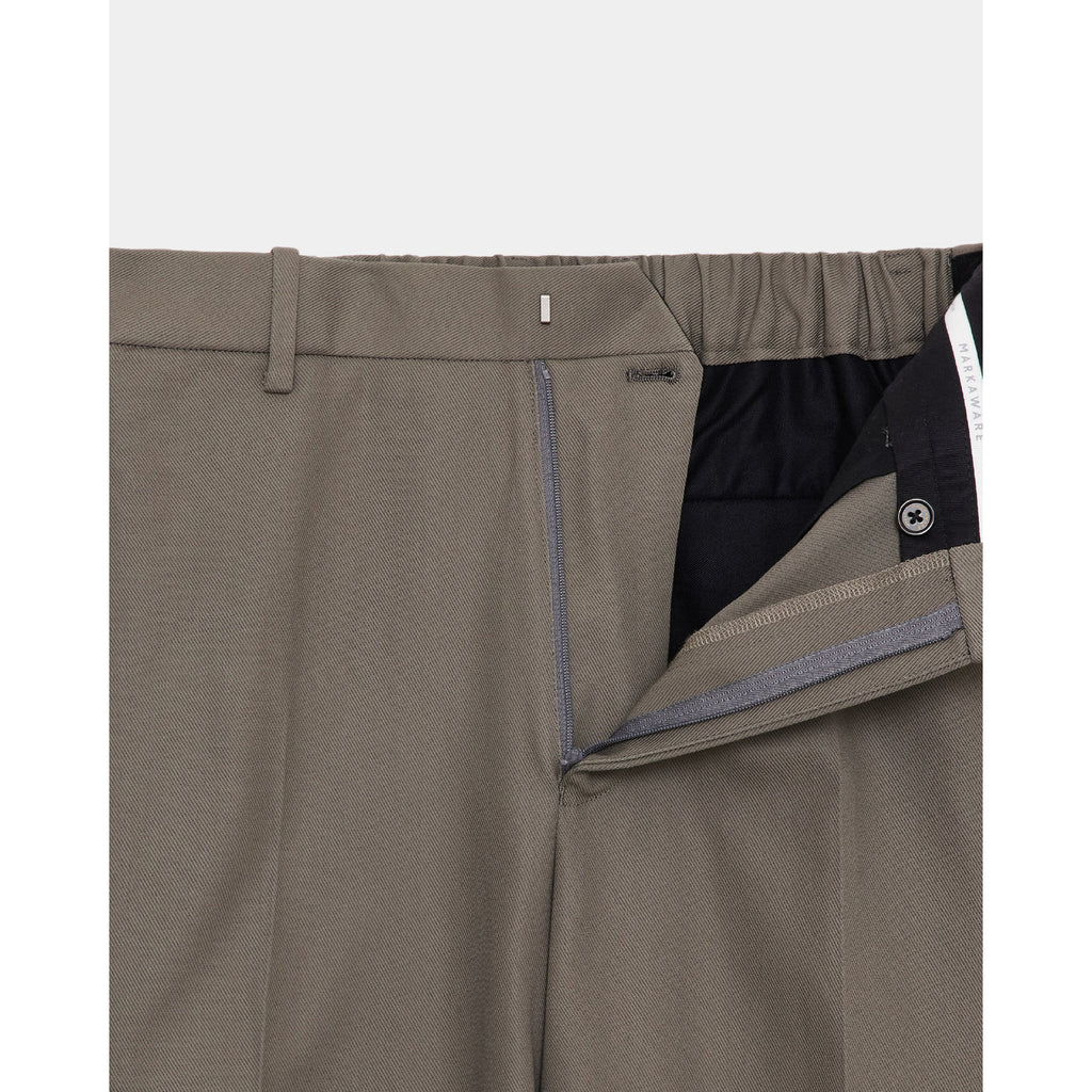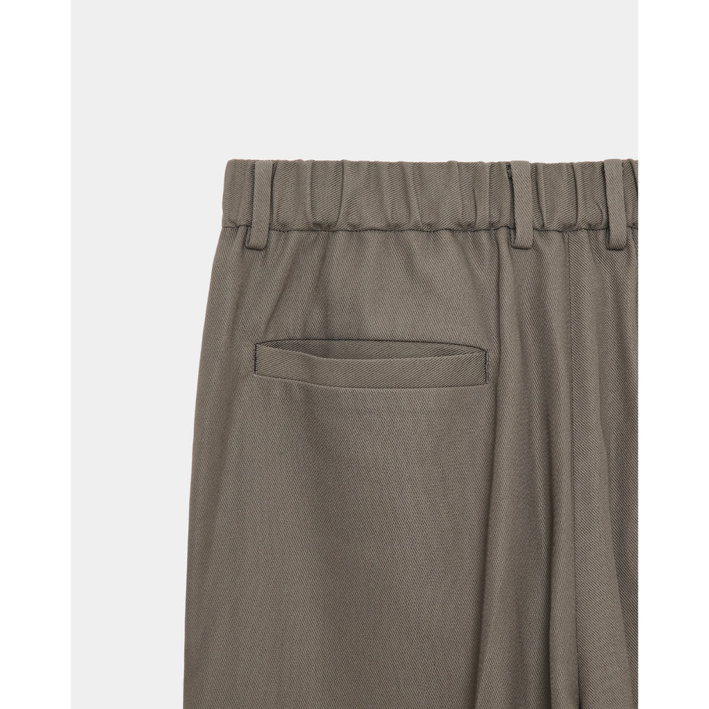ウエスト後部にはゴムを配し、見た目の端正さを保ちながら快適なフィット感を確保。素材の表情が引き立つ、シンプルで洗練されたデザインです。
