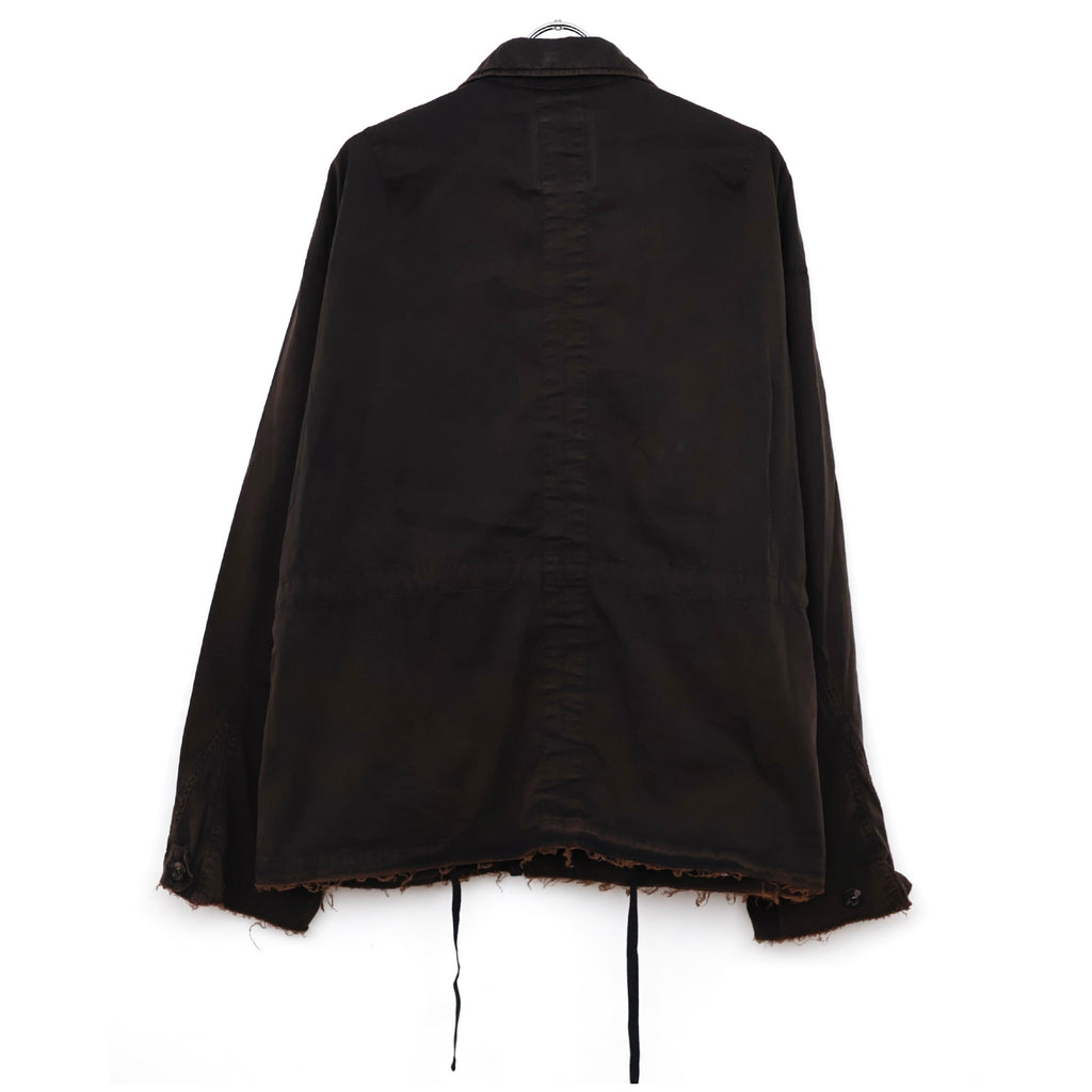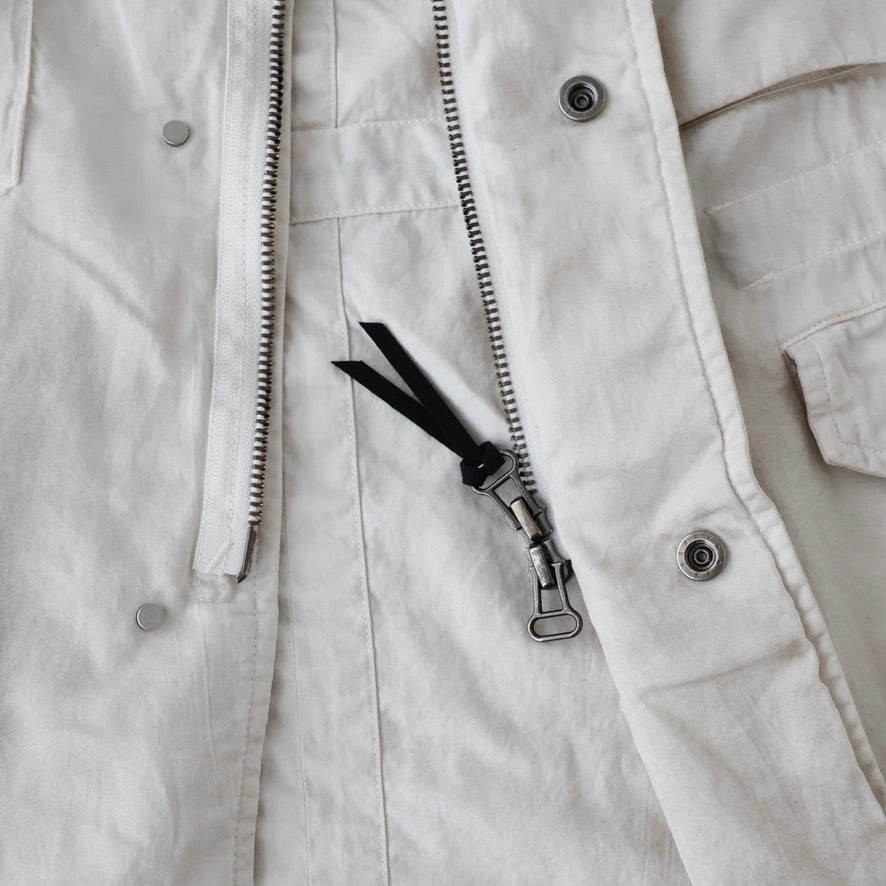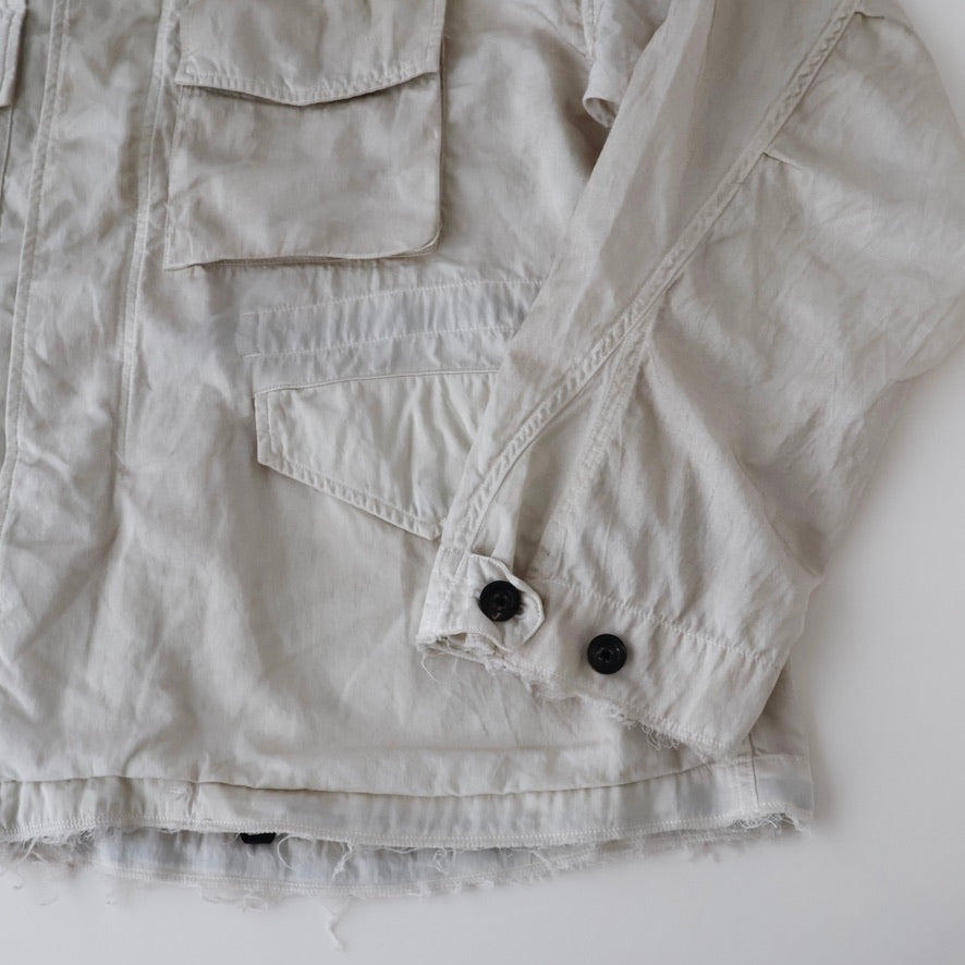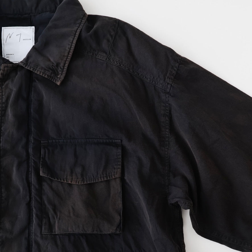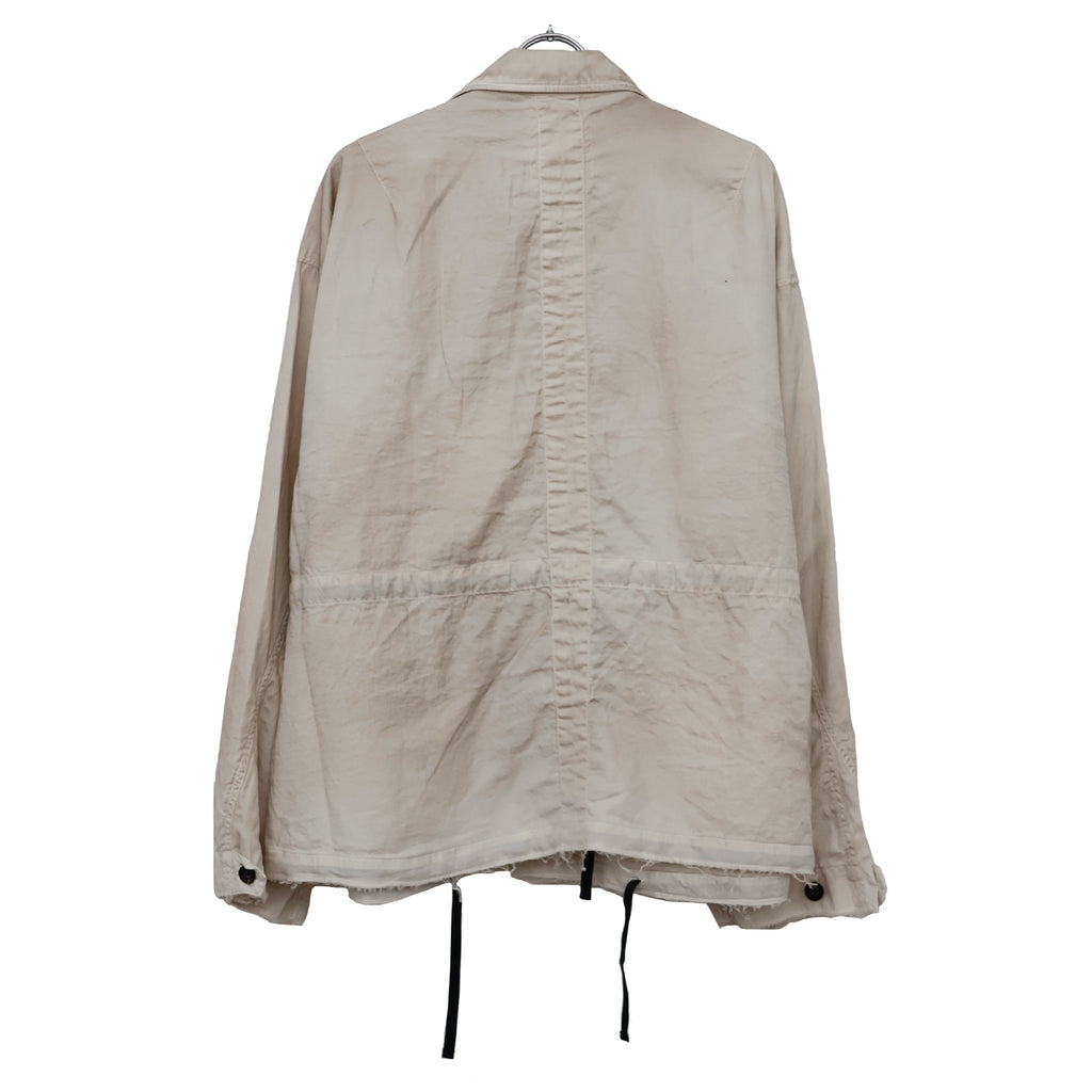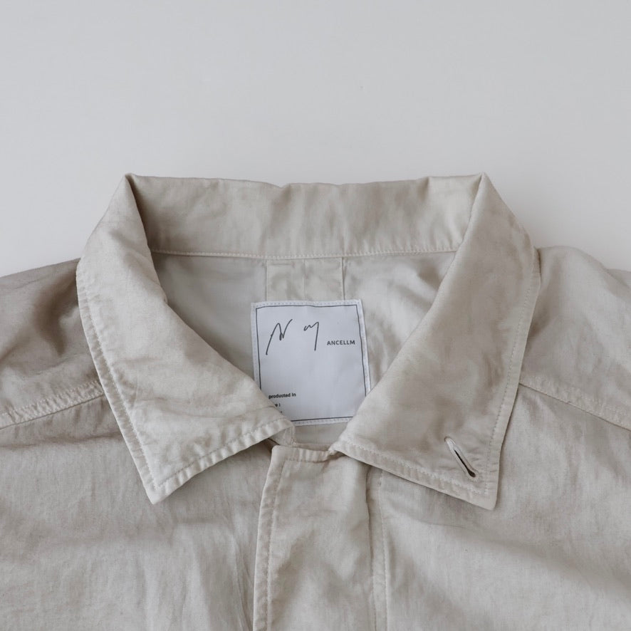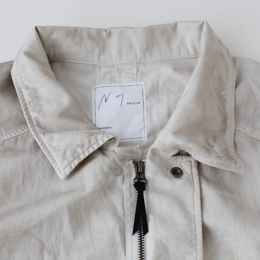 縫製に現れるパッカリングと蛇行、スナップのアタリ、断ち切りから垂れる糸など、粗さを含みながらも無骨になりすない羽織りやすさを目指し、全体のバランスを緻密に設計しております。