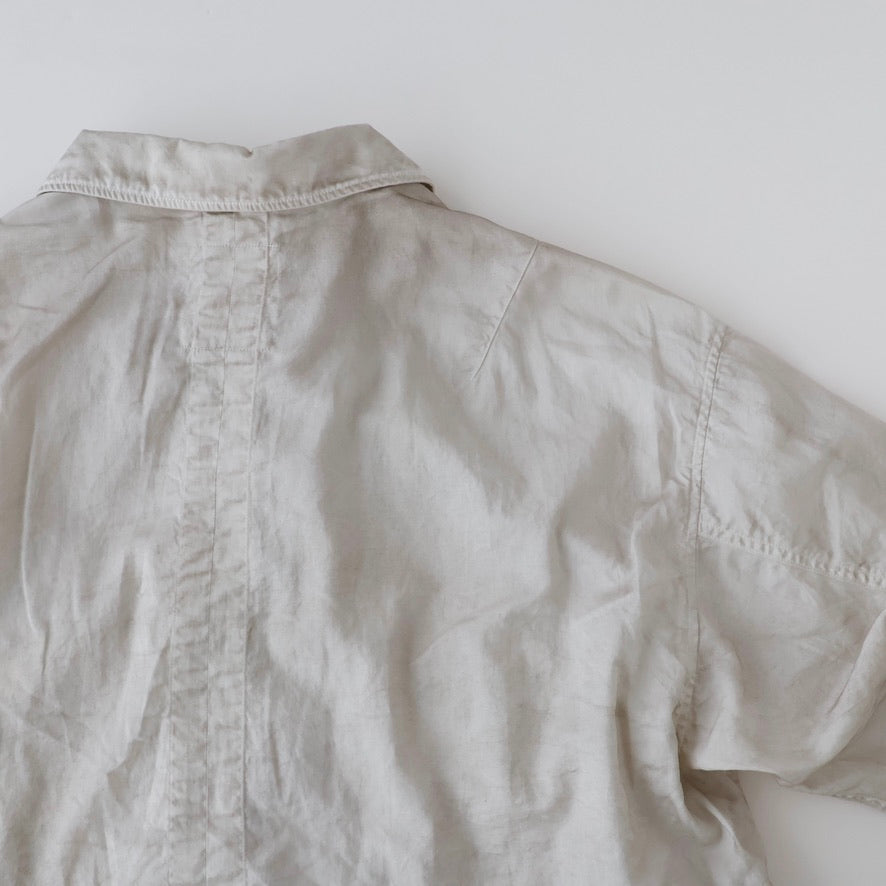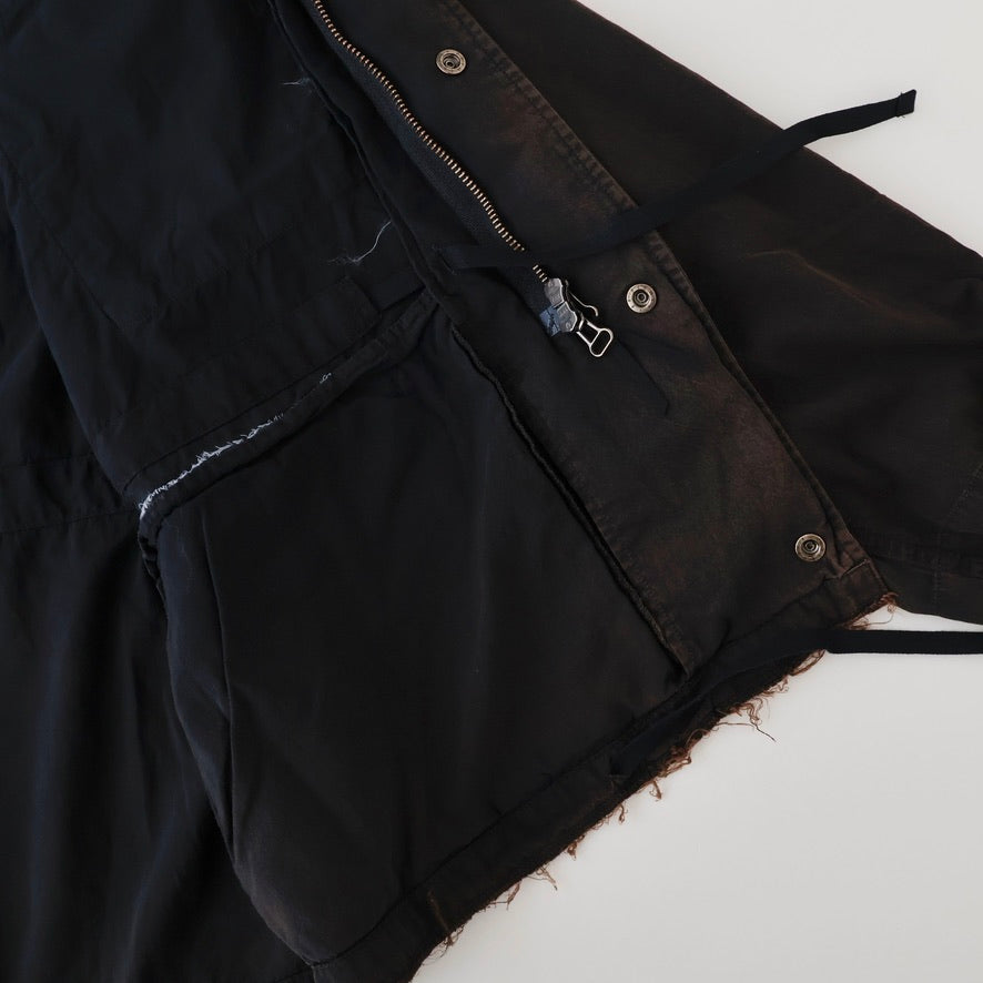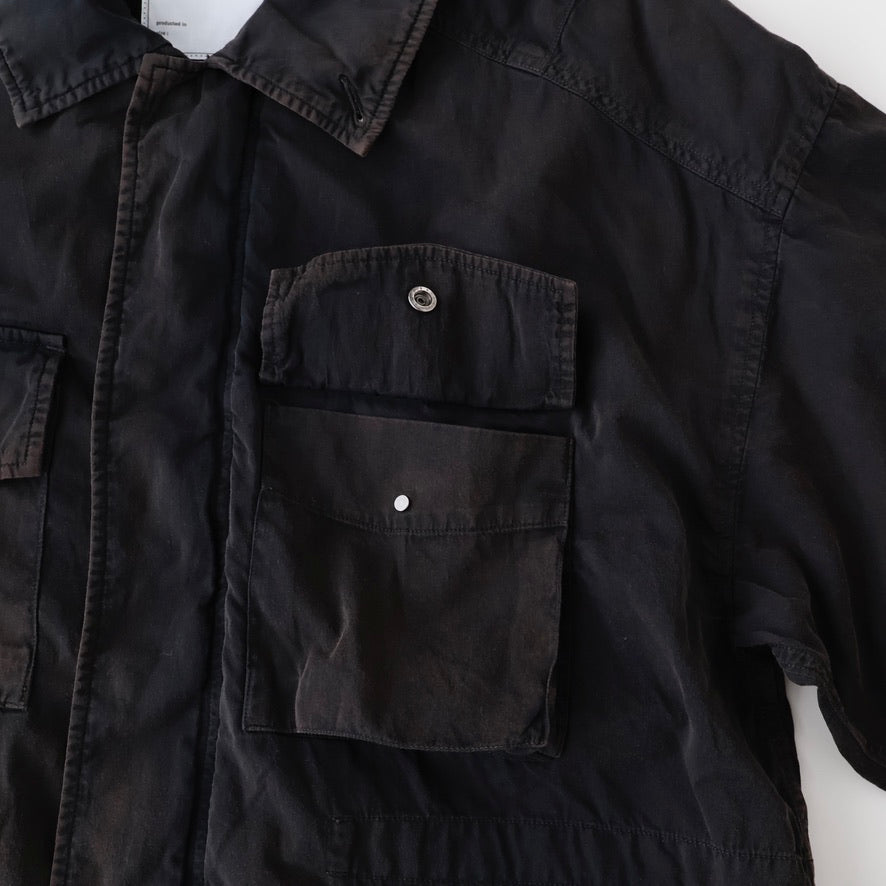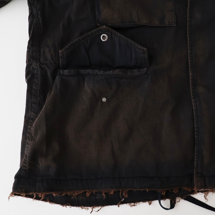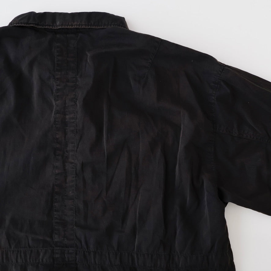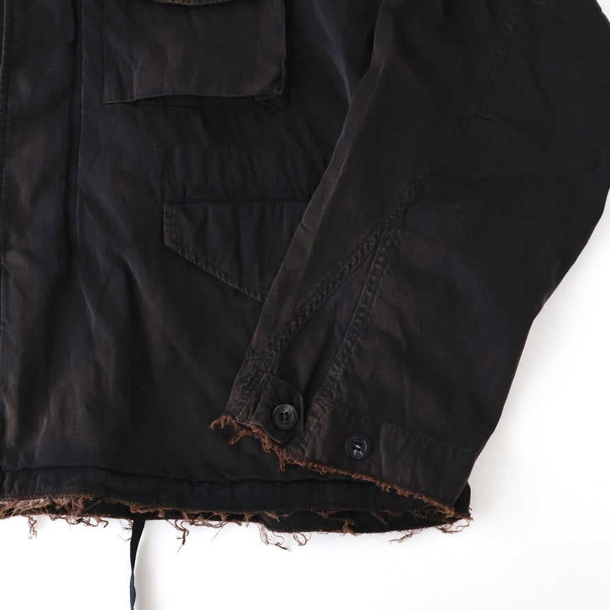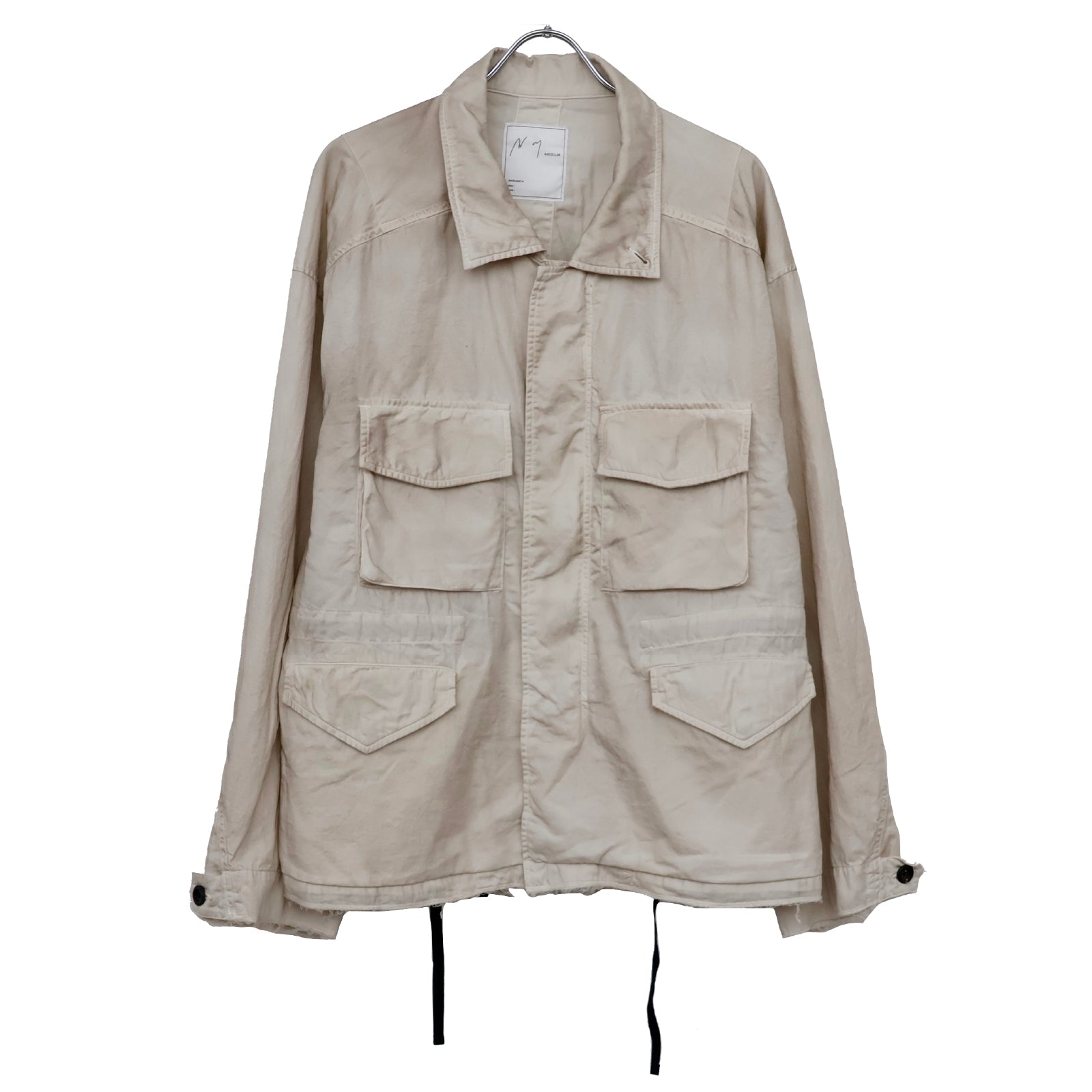 縫製に現れるパッカリングと蛇行、スナップのアタリ、断ち切りから垂れる糸など、粗さを含みながらも無骨になりすない羽織りやすさを目指し、全体のバランスを緻密に設計しております。