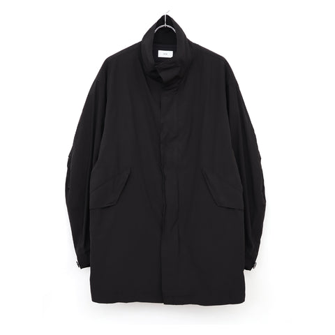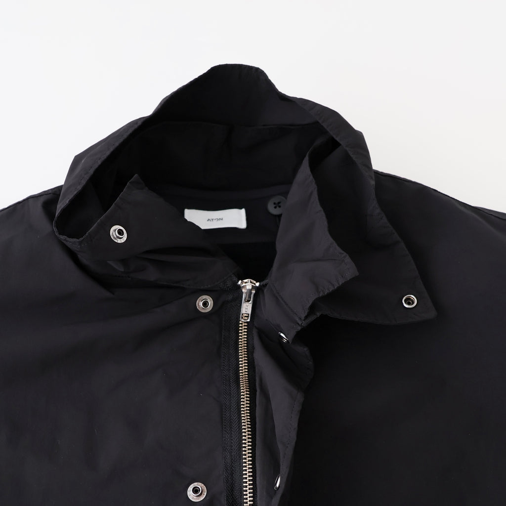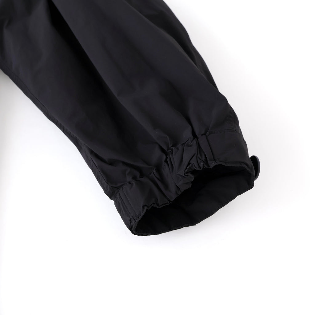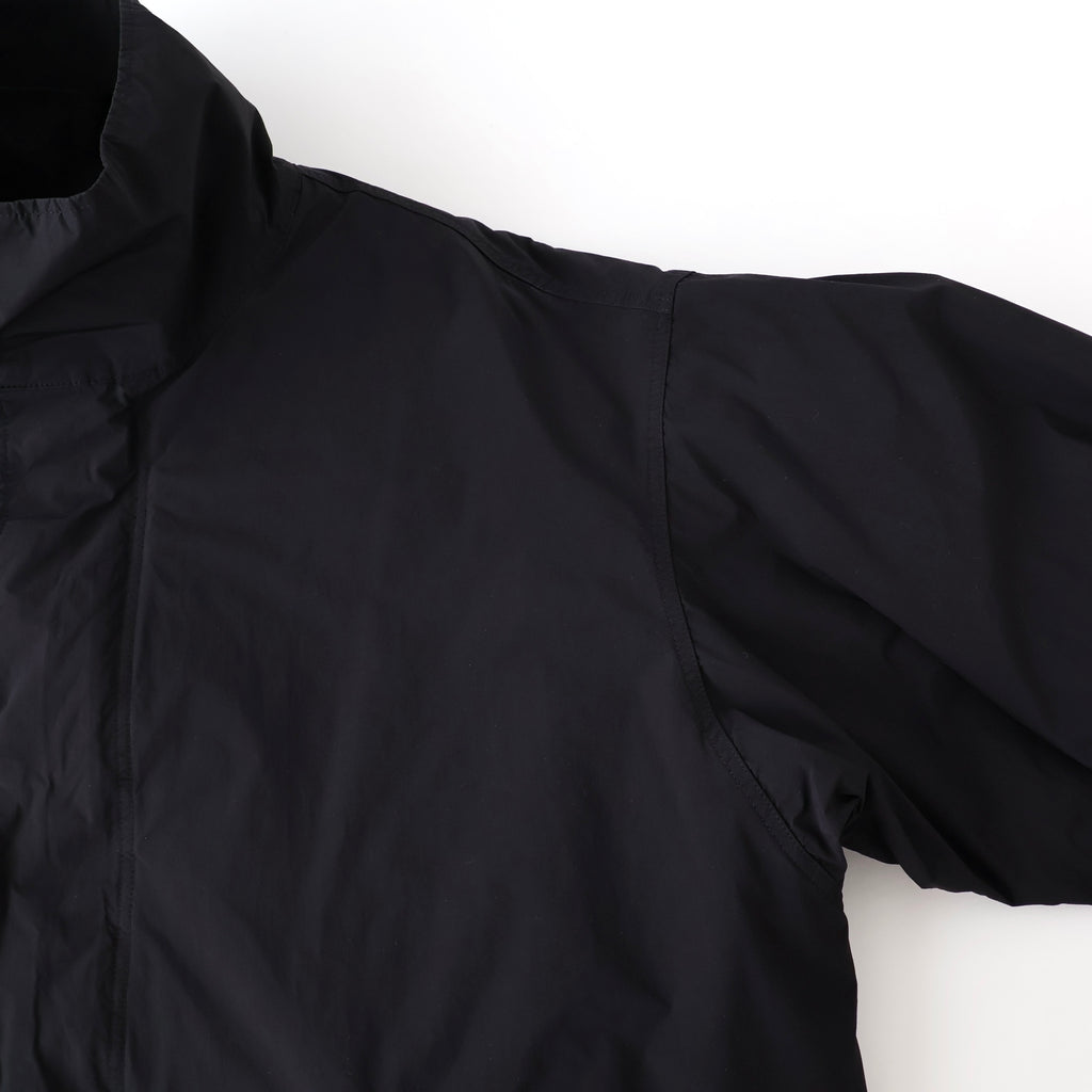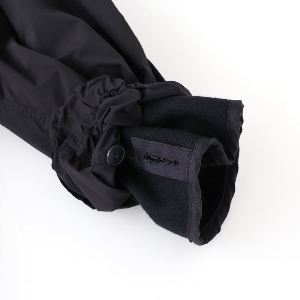 ナイロンとポリエステルの熱収縮率の違いを生かし、環境の変化により表情が変わっていく様を楽しむことのできる、天然繊維のような糸を使用し、石川県能美市にて高密度に織り込むことにより、独特の風合いを表現した素材です。製品染めで仕上げ、撥水加工を施しています。ライナーはしっかりと保温性が伴うので、真冬でも着用することができます。