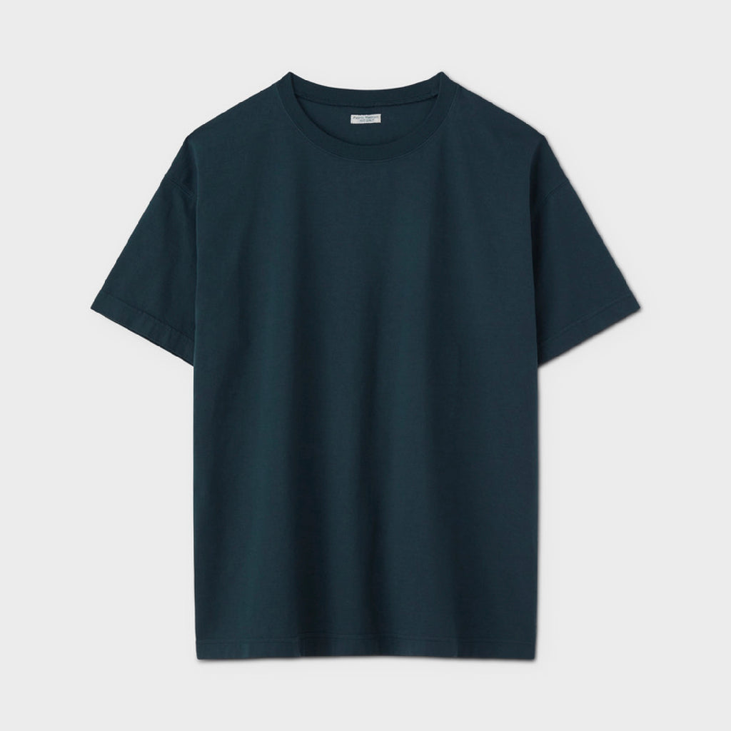 単糸使いで編み立てた度詰め仕様で、滑りのある風合いが特徴です。後ろに逃した肩線が特徴。