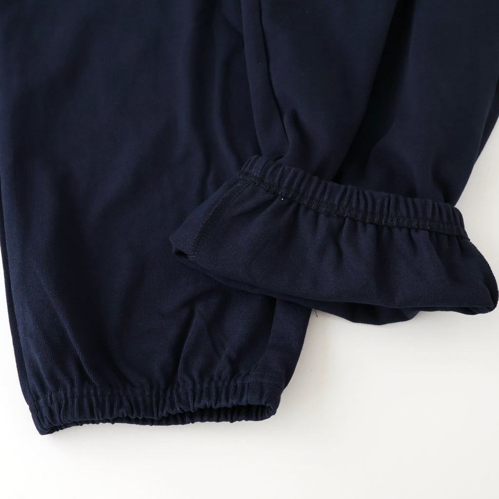 ふくらみのあるシルエットを活かし、ボトムスは膝から裾にかけてのラインにボリュームを持たせ、よりクラシックなアスレチックパンツの表情に仕上げています。