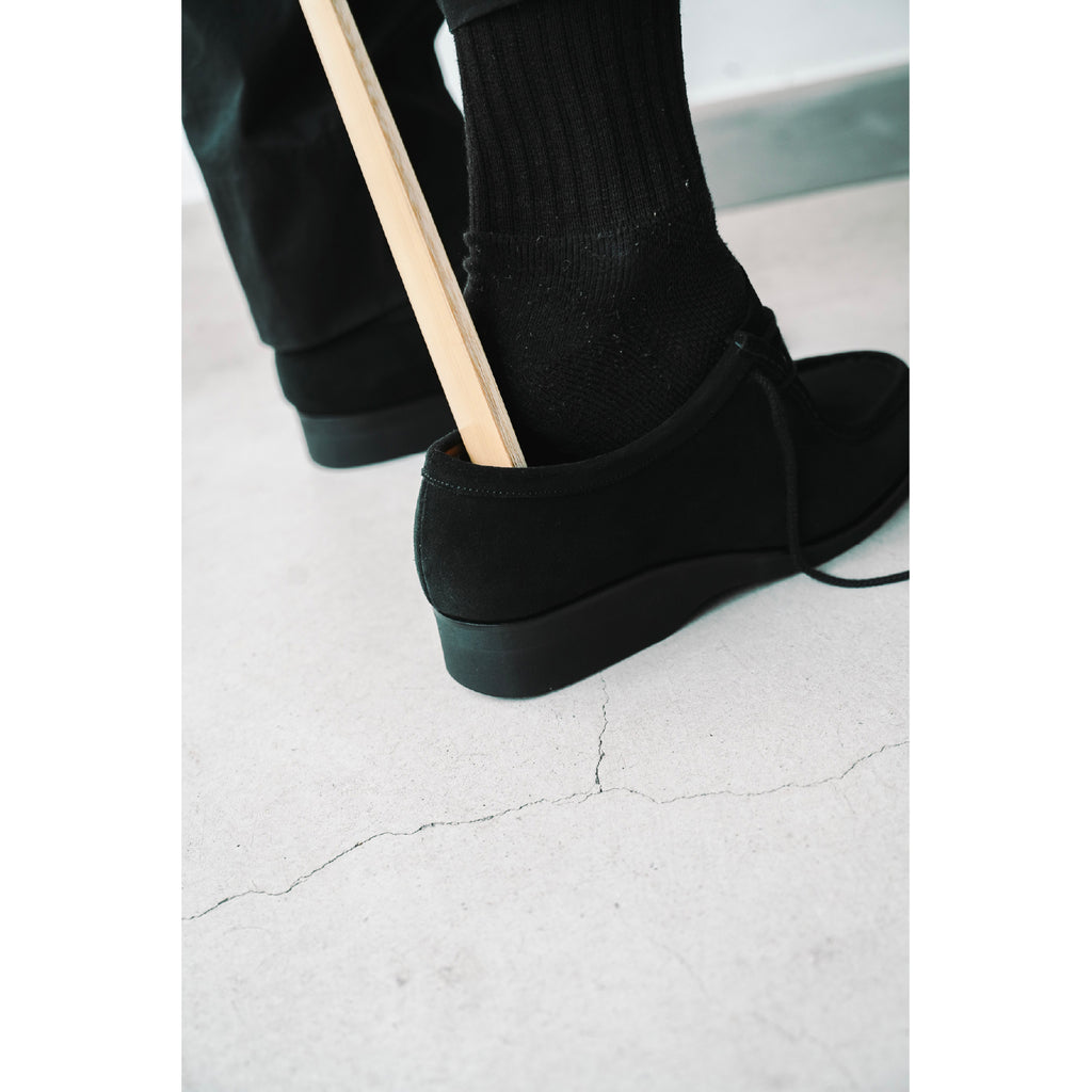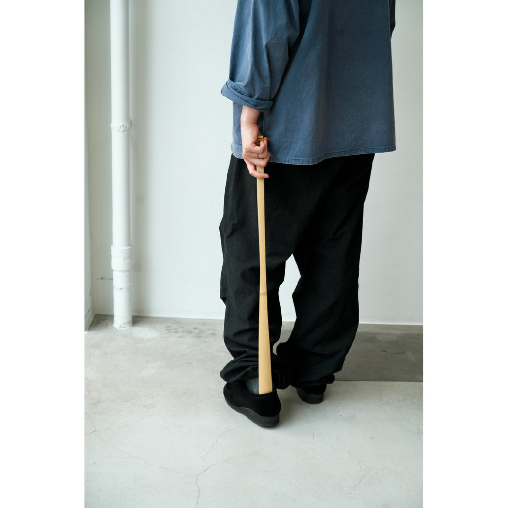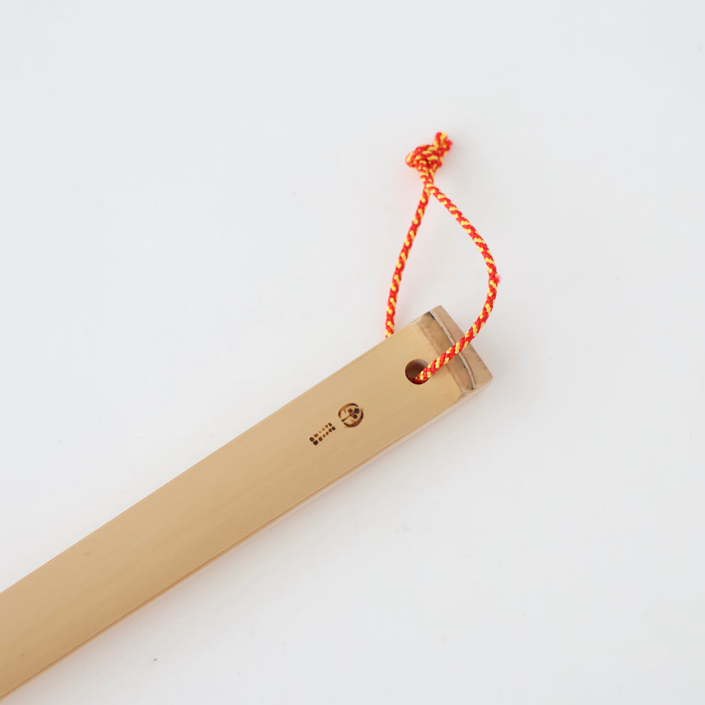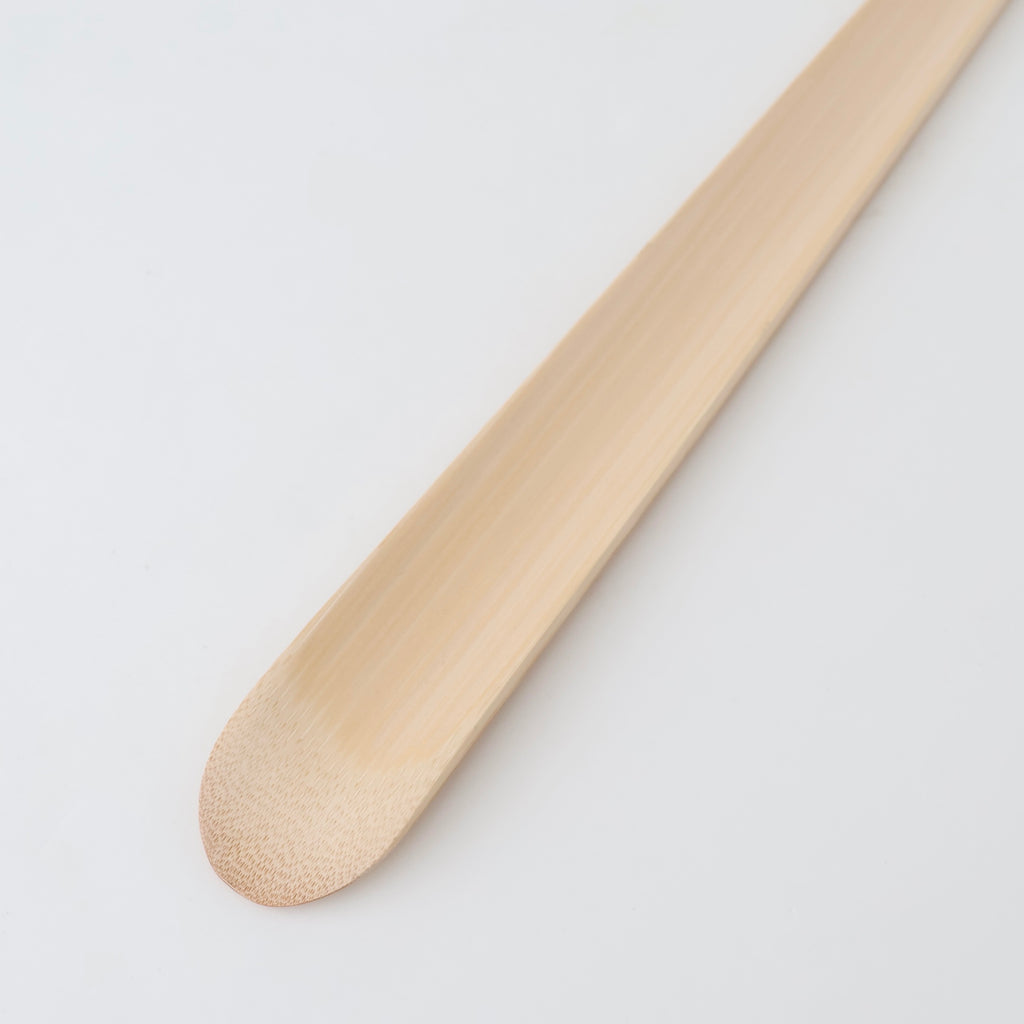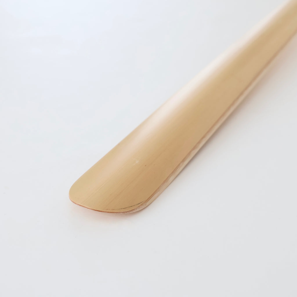 節間の長い真竹を選び抜き、竹のしなやかさを活かした無垢のままの一本使いで、かがまなくても使える長さに仕立てられた靴べら。